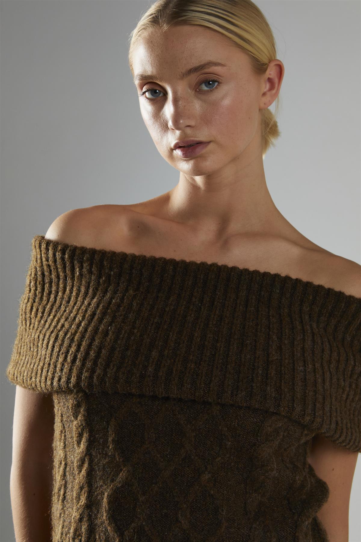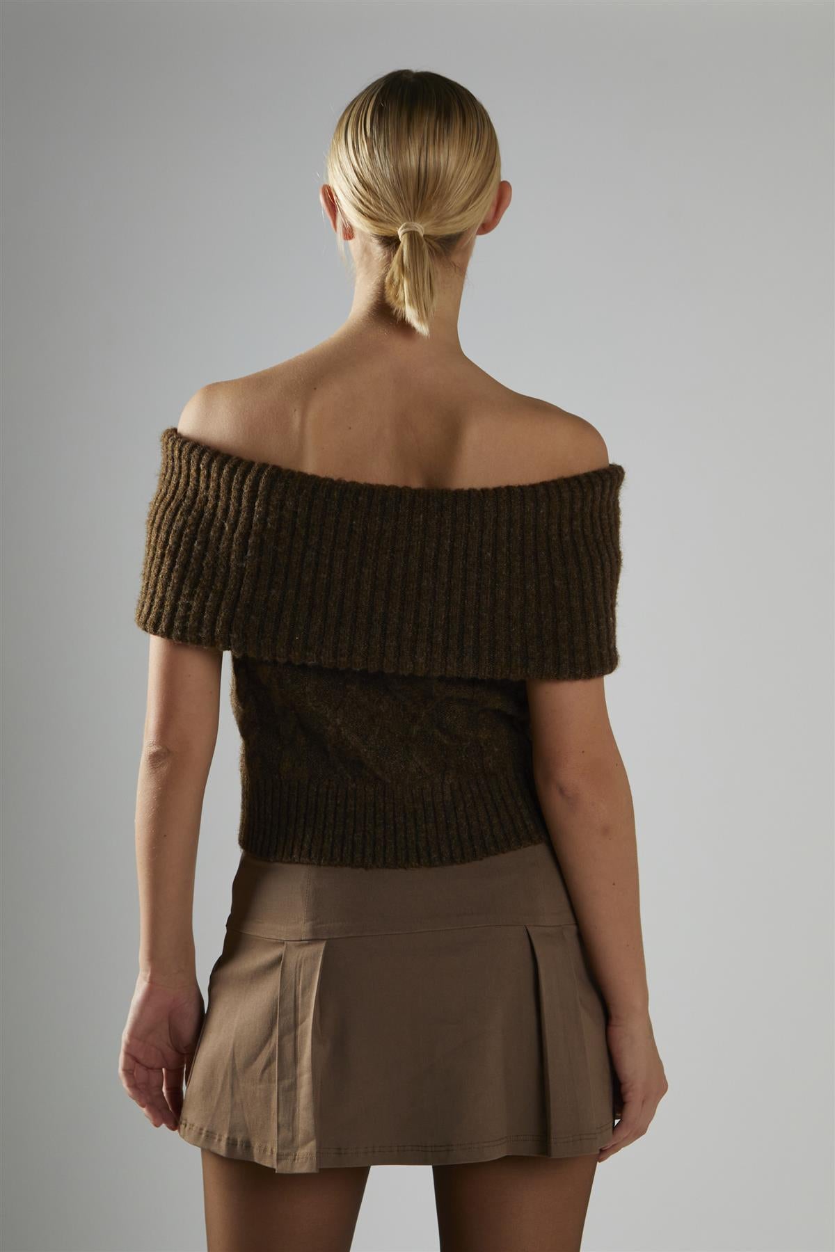 Glamorous Women's Dark-Brown Bardot-Cable-Knit Jumper. This sleeveless jumper brings a fresh twist to classic knitwear with its bardot neckline, giving you a chance to show off your shoulders while staying cozy. The cable knit texture adds a touch of interest and warmth, making it a lovely choice for layering over a simple tee or wearing solo when the weather’s mild. Its relaxed fit keeps things comfortable, while the unique neckline brings a bit of charm to your everyday look. Pair it with your favourite jeans for a casual outing, or tuck it into a skirt for a more put-together feel. This jumper is all about easy style and comfort, perfect for days when you want a little something different in your rotation.