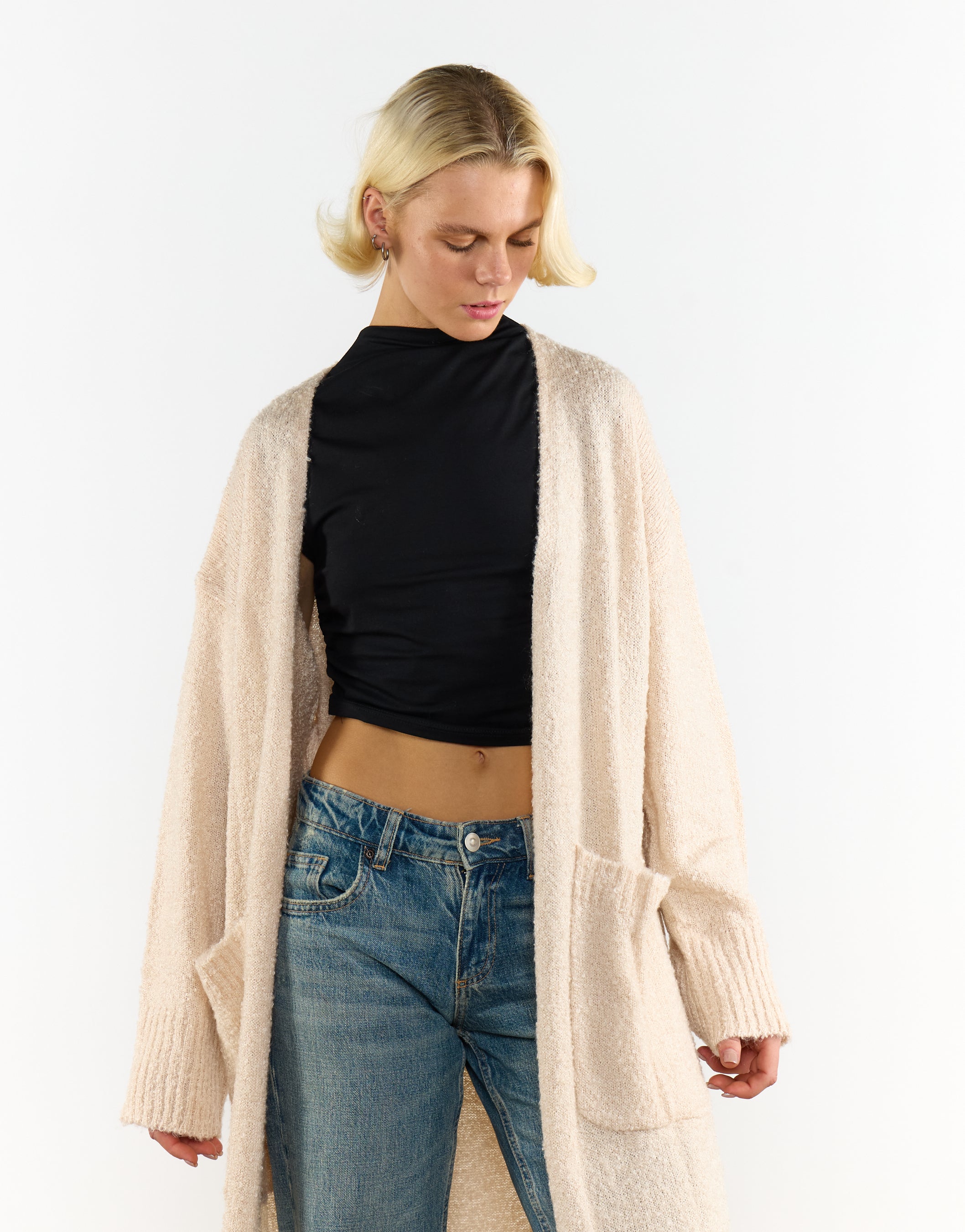 Glamorous Women's Dark-Cream Oversized Longline-Cardigan. This oversized longline cardigan is made for days when comfort is key and you want a little extra coziness without any effort. The longline cut gives you that snuggly, wrapped-up feeling, while the roomy sleeves make it easy to move and layer over your favourite tops. Handy pockets are a thoughtful touch, perfect for warming your hands or tucking away your phone and keys on the go. The relaxed fit keeps things casual and easy-going, so you can throw it on for a morning walk, a coffee run, or just lounging at home. Its simple design means it pairs well with just about anything, making it a reliable piece you’ll find yourself reaching for again and again. This cardigan is all about easy comfort with a gentle nod to style, making every day feel a little softer.