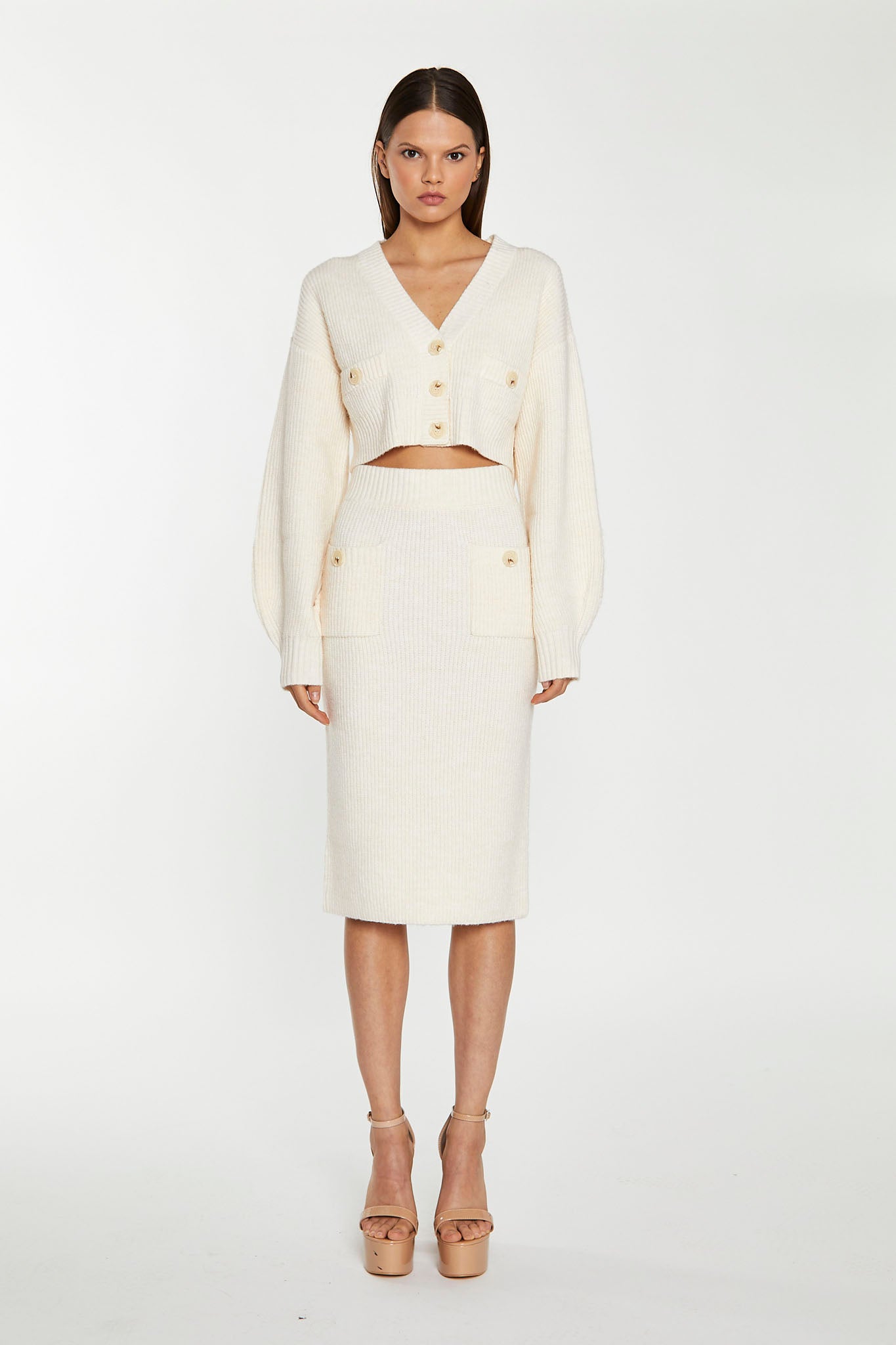 Glamorous Womens Dark-Cream Oversized Sleeve Crop-Cardigan. Stay cozy and stylish in this Oversized Sleeve Crop-Cardigan! Featuring voluminous sleeves, mock pocket details, rib cuff and hem, this cardigan is perfect for any chic and comfy look. Whether you style it with the matching skirt to make a statement or keep it casual with jeans, youll look fabulous.