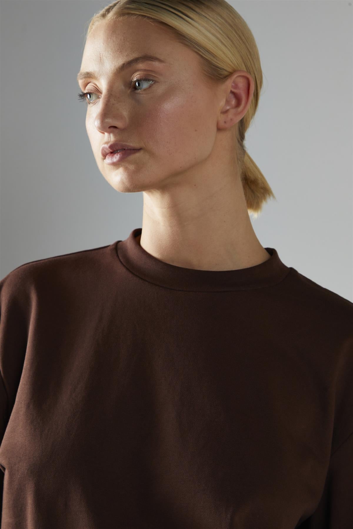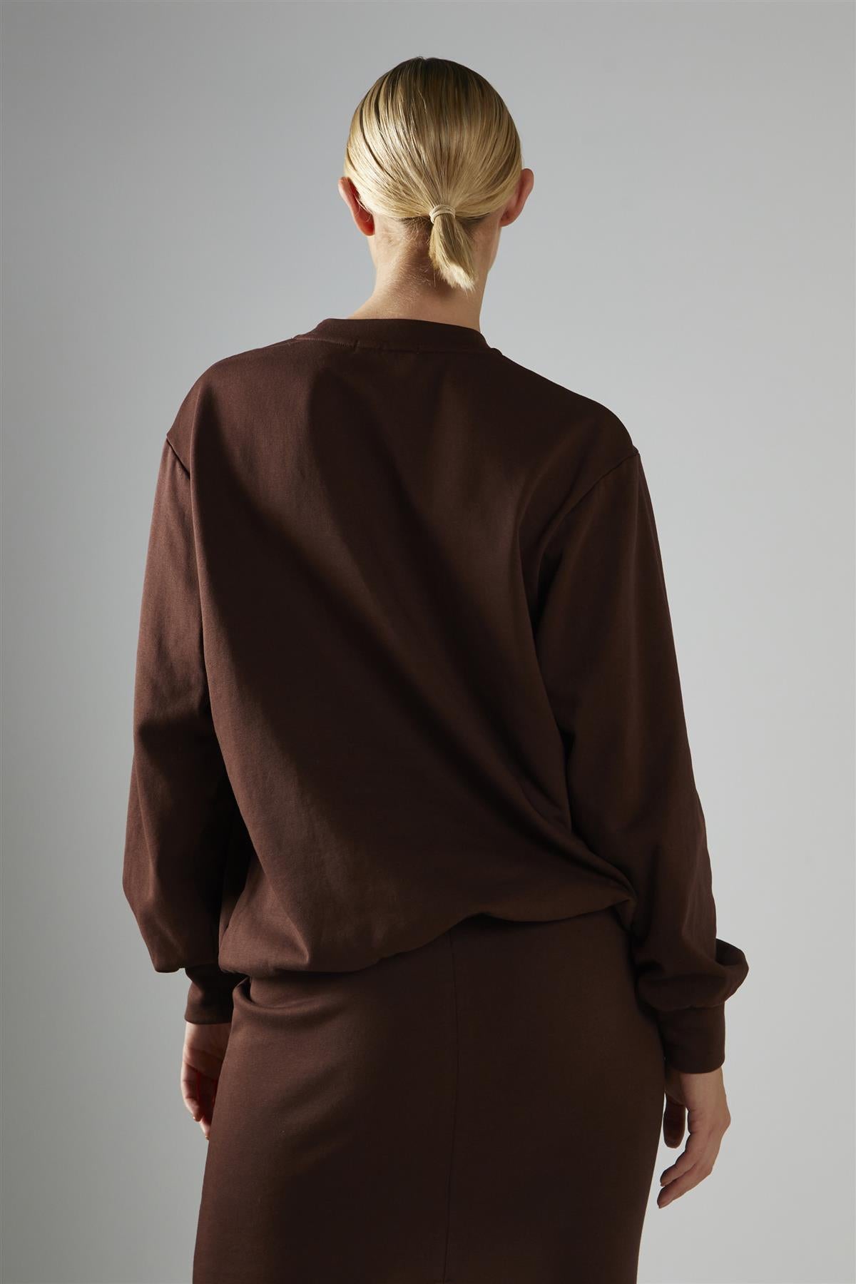 Glamorous Women's Deep-Brown Pullover Long Sleeve-Top. This deep-brown pullover long sleeve top is all about ease and everyday comfort. With a relaxed fit that drapes just right, it brings a laid-back touch to whatever’s on your schedule—morning coffee runs, lazy afternoons, or quick catch-ups with friends. The soft fabric makes it feel like a lived-in favourite from the first wear, and the simple design keeps things low-key but still pulled together. Long sleeves add a cozy finish, making it a handy piece for layering when the temperature dips. Style it with jeans for a casual look, or try pairing it with the matching maxi skirt for an easy, tonal outfit that feels thoughtful without trying too hard.