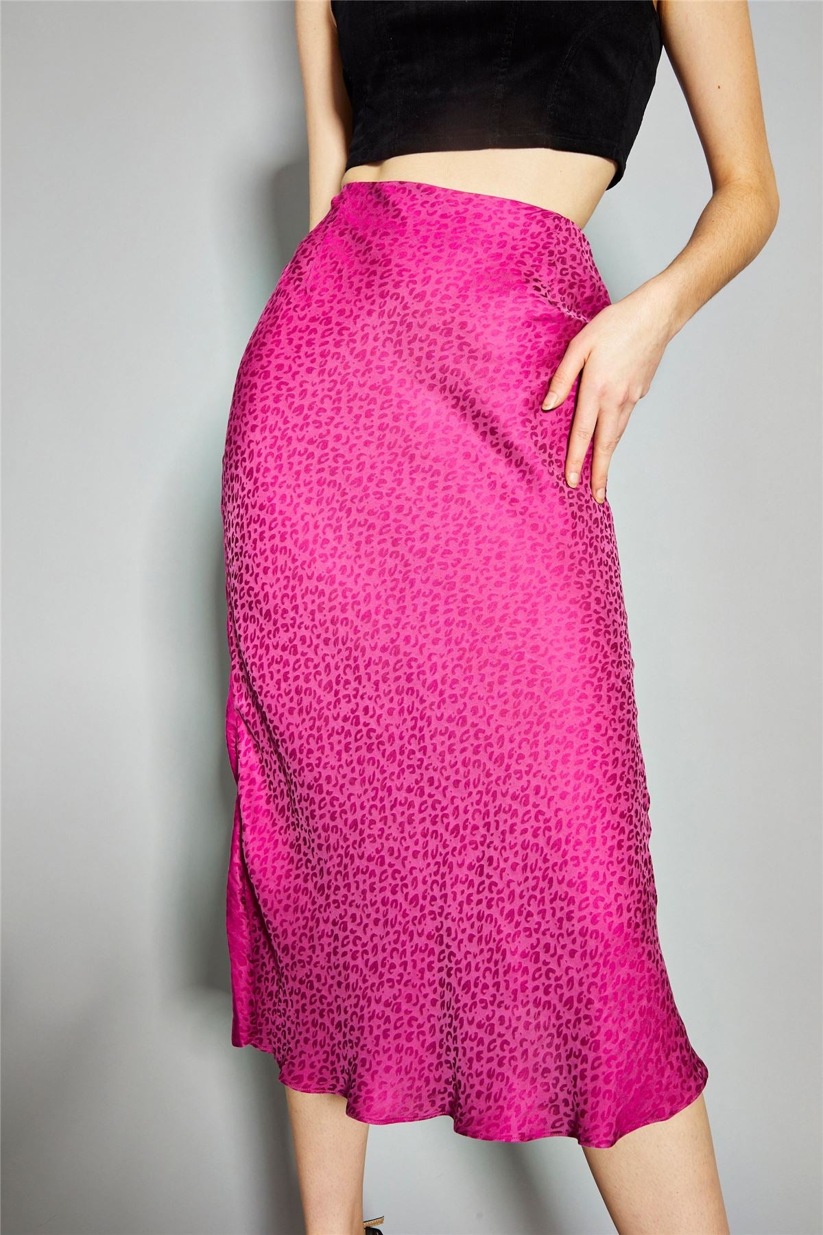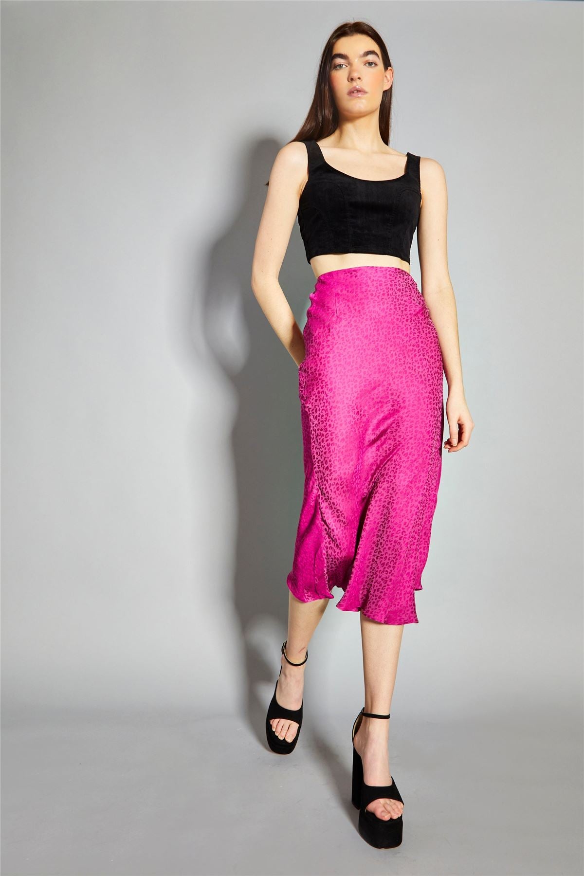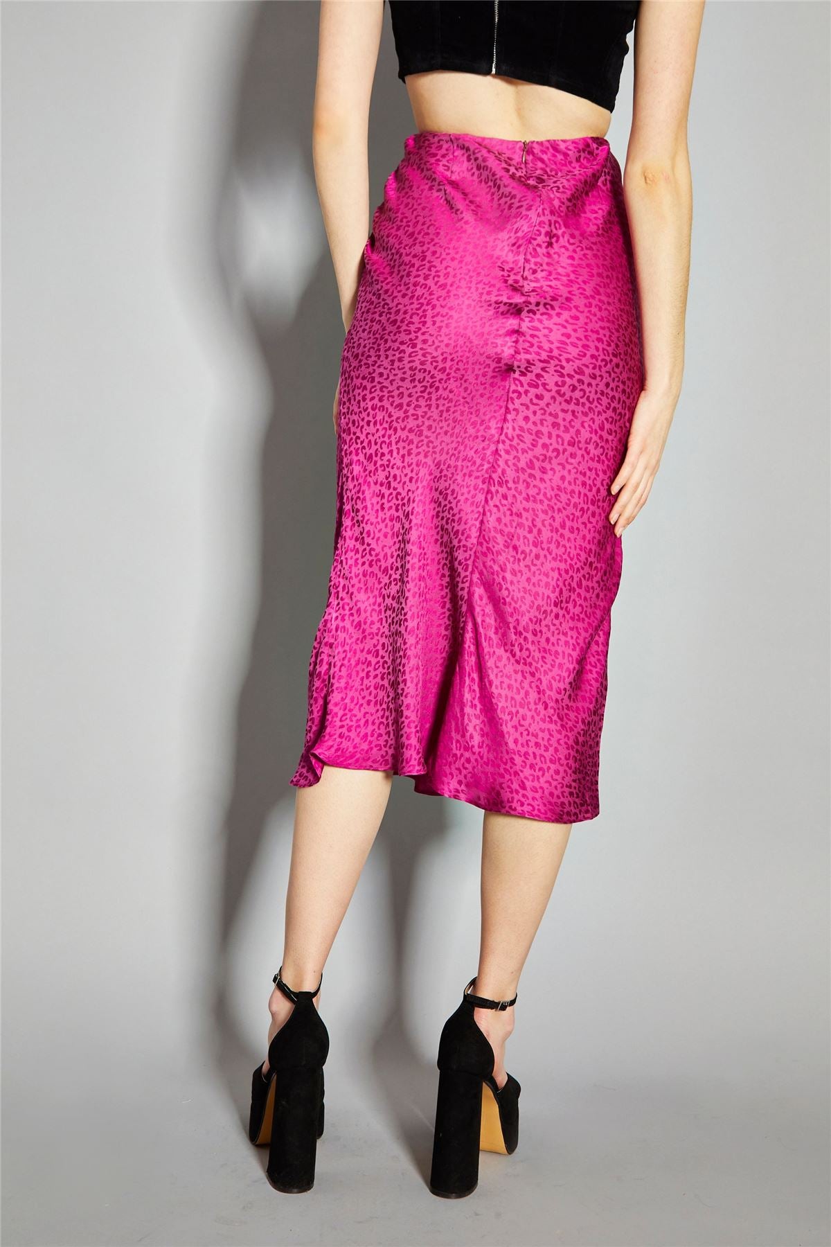 Glamorous Women's Deep-Orchid Leopard Bias-Cut Midi-Skirt. This midi-skirt is a stylish and versatile piece that will elevate any outfit. The bias-cut design creates a flattering, flowing silhouette, while the deep-orchid leopard print adds a touch of playful elegance. The concealed zip fastening at the back ensures a seamless, comfortable fit. Pair it with a simple top and sandals for a casual daytime look, or dress it up with a blouse and heels for a night out. This skirt is perfect for those who want to add a little something special to their wardrobe without sacrificing comfort or style.