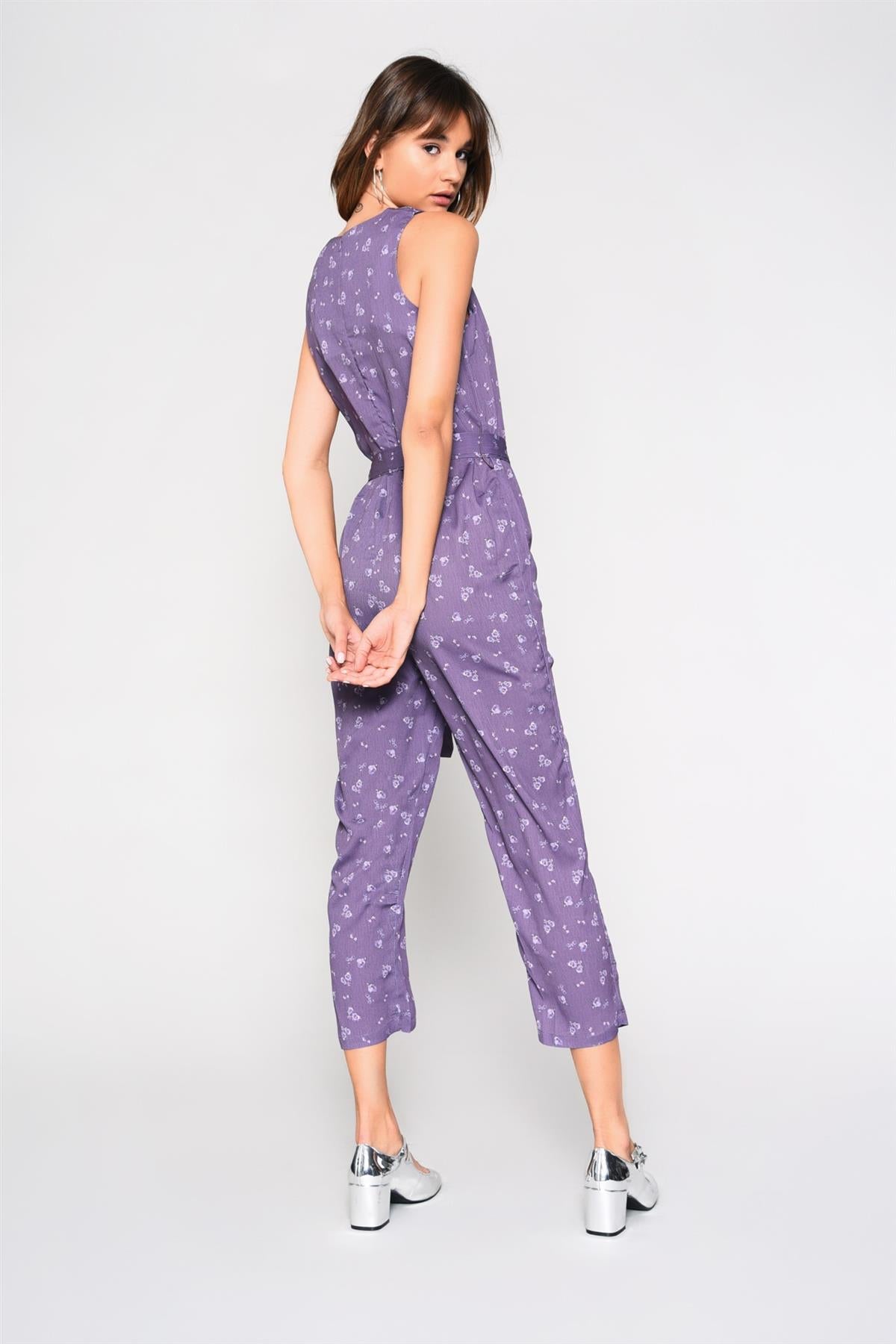 Glamorous Women's Dusty-Purple Floral Belted Jumpsuit. Embrace the beauty of simplicity with our Dusty-Purple Floral Belted Jumpsuit. This sleeveless wonder is the perfect blend of comfort and style, featuring a crew neck and a flattering waist belt to accentuate your figure. The delicate floral print adds a touch of whimsy, while the relaxed silhouette ensures you'll feel as fabulous as you look. Whether you're running errands or enjoying a night out, this versatile jumpsuit will have you feeling confident and comfortable all day long. Elevate your everyday look with this effortless and chic piece.