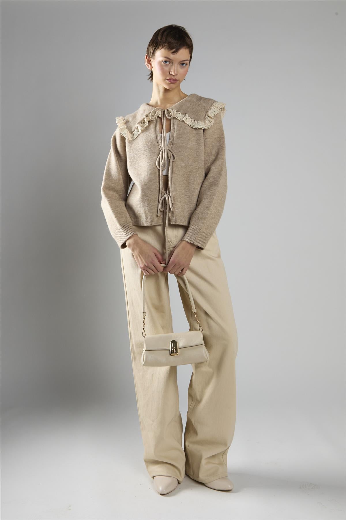Ecru High-Waisted Straight-Leg Jeans