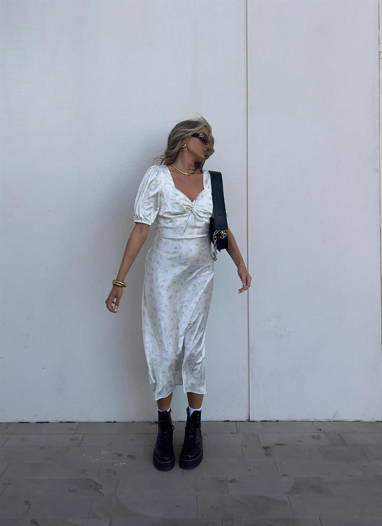 Collective the Label Women's Felicity Twist Front Midaxi Dress -Green Pink Stem Floral. Let your style blossom in the Felicity. This satin style midaxi dress with twist front creates a flattering look to all body shapes. So if you are looking for that sophisticated yet effortless outfit, you don't need to search any further, the Felicity is all you need. Style down with trainers and a cropped denim jacket or your favourite pair of heels and fun clutch for an evening out, it is perfect for all occasions.