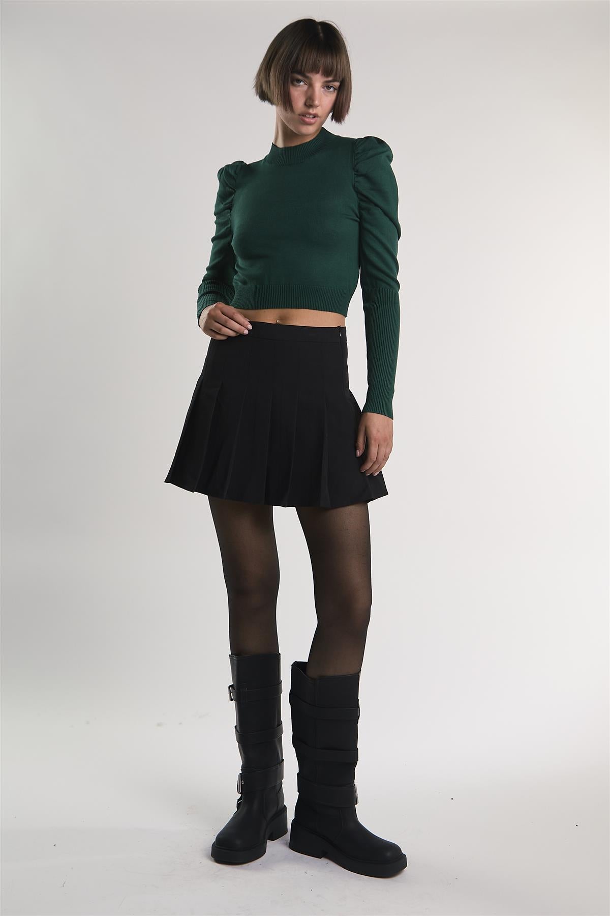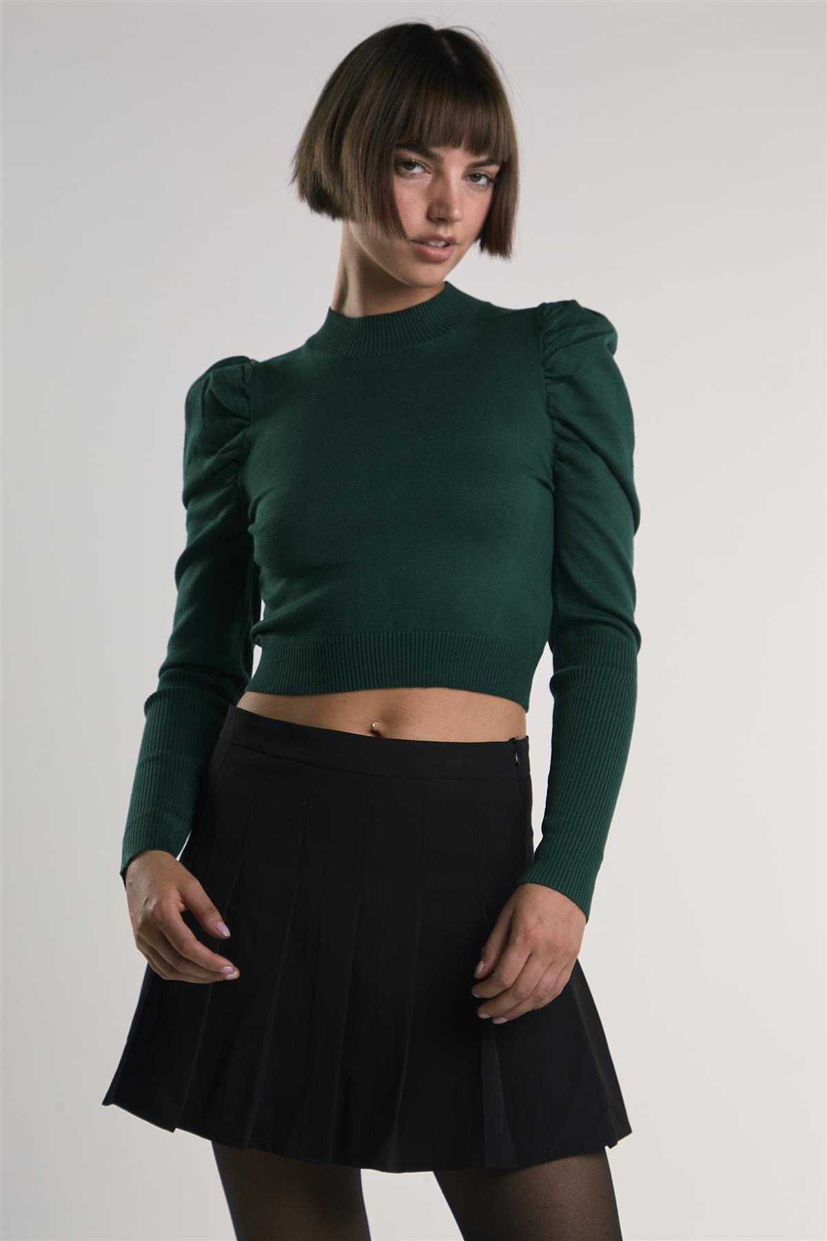 This High Neck Crop Jumper combines cozy warmth with chic style. The high neckline adds a touch of elegance, while the ruched long sleeves bring a playful, feminine vibe. Style it with a mini skirt and boots to bring some edge to your look.