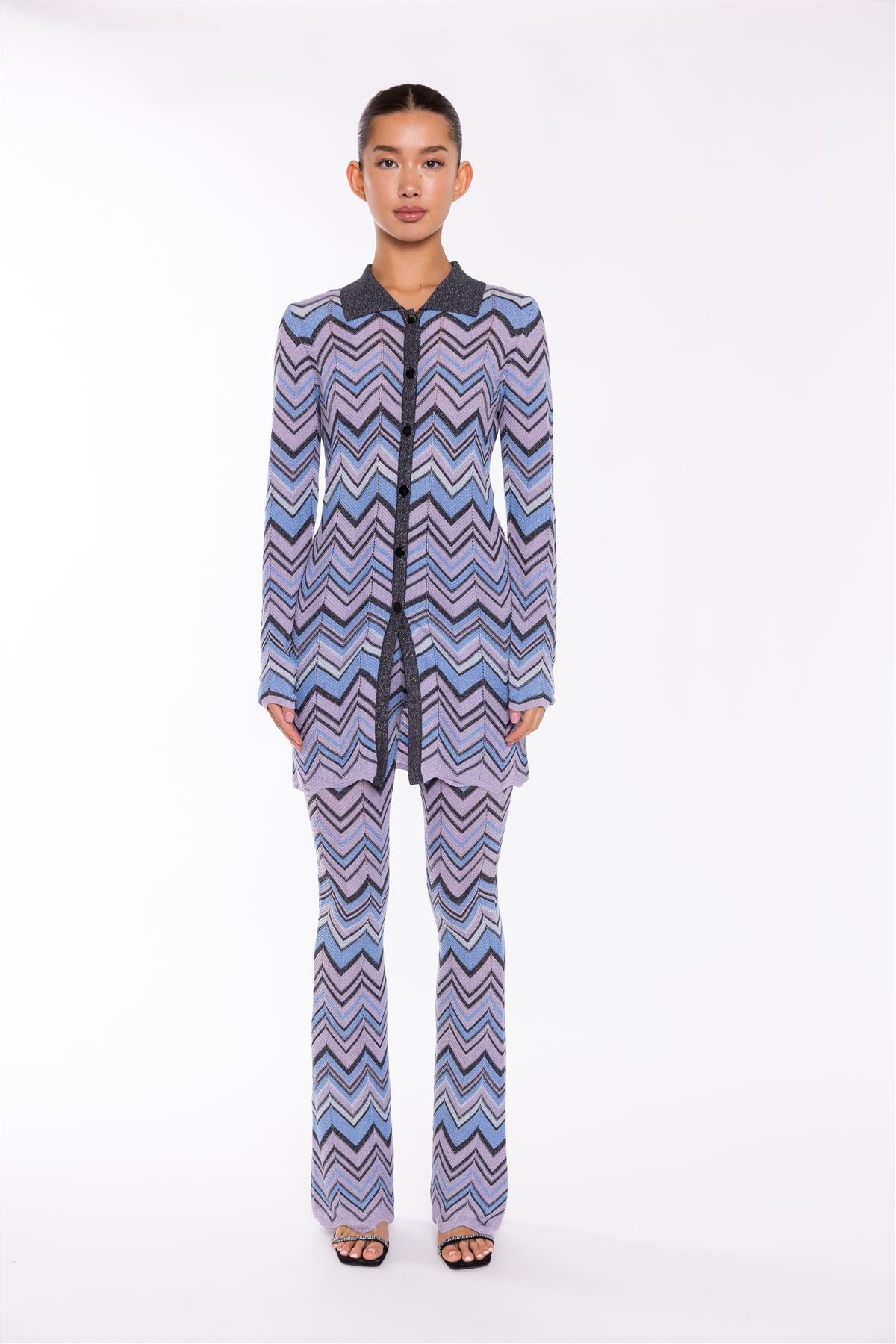 Full Sleeves Cardigan - Lilac Blue Chevron