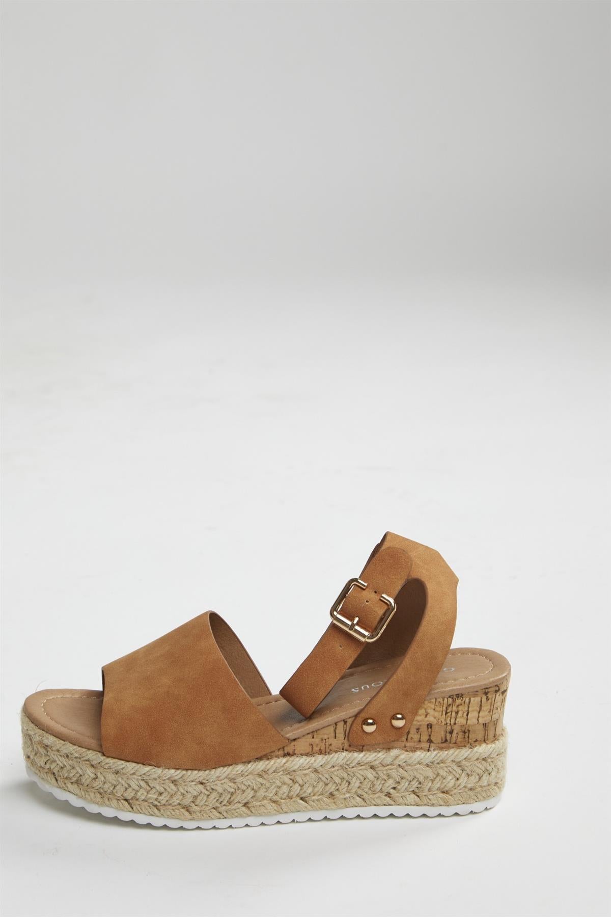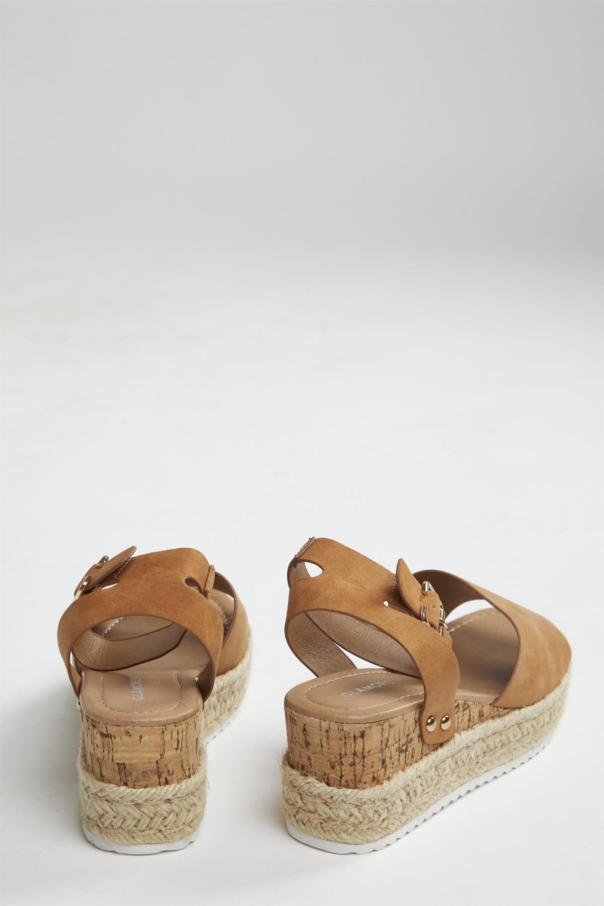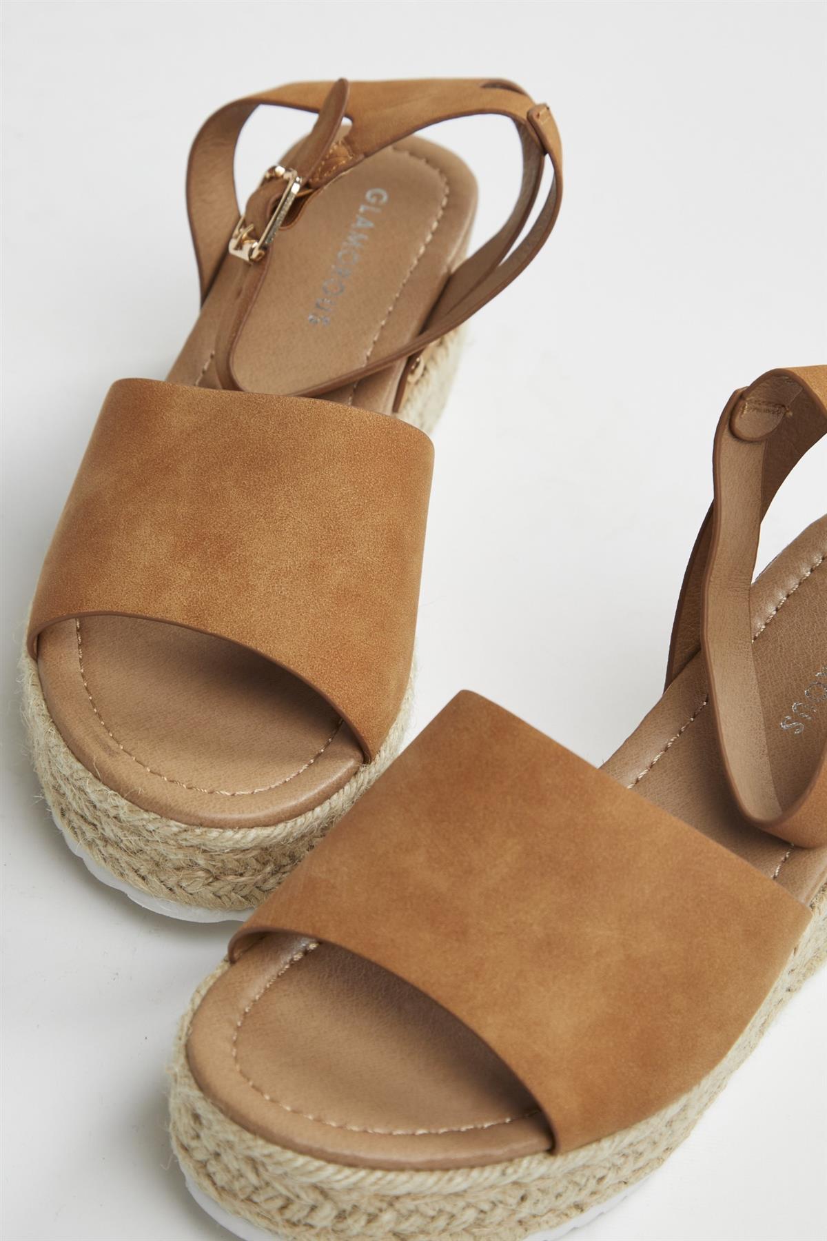 Glamorous Women's Tan Nubuck Espadrille Sandals. Look summer-ready with these cream espadrille sandals! Enjoy the support and comfort of the thick sole and adjustable buckle fastening, while the open toe and flat sole give a chic, stylish look. An absolute must-have!