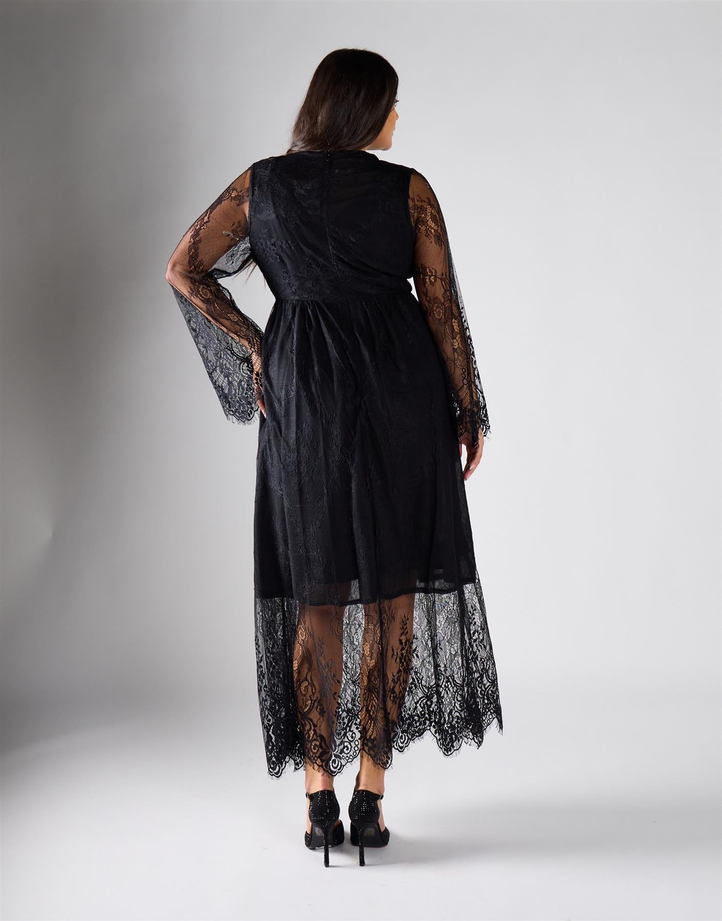 Step into effortless elegance with this flowing black maxi dress, designed to combine comfort and style in one statement piece. Its wide-leg cut offers graceful movement, while the bow tie neck adds a touch of sophistication that draws attention without being overdone. Long sleeves provide coverage while keeping the silhouette sleek, and the compact stretch fabric ensures a flattering fit that moves with you throughout the day. Perfect for elevating any occasion, this dress feels both comfortable and refined. Style with minimal accessories for a polished, elegant look.
