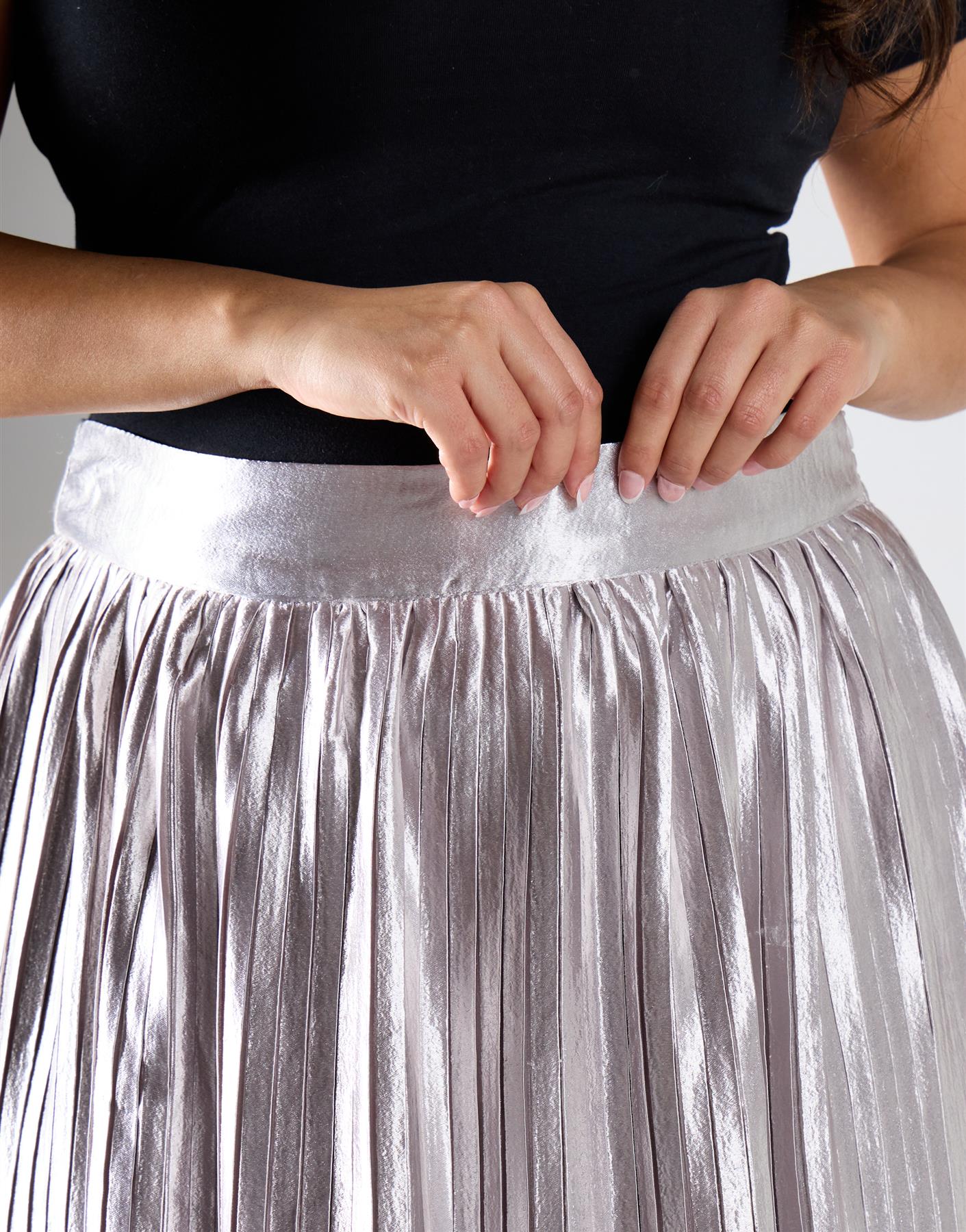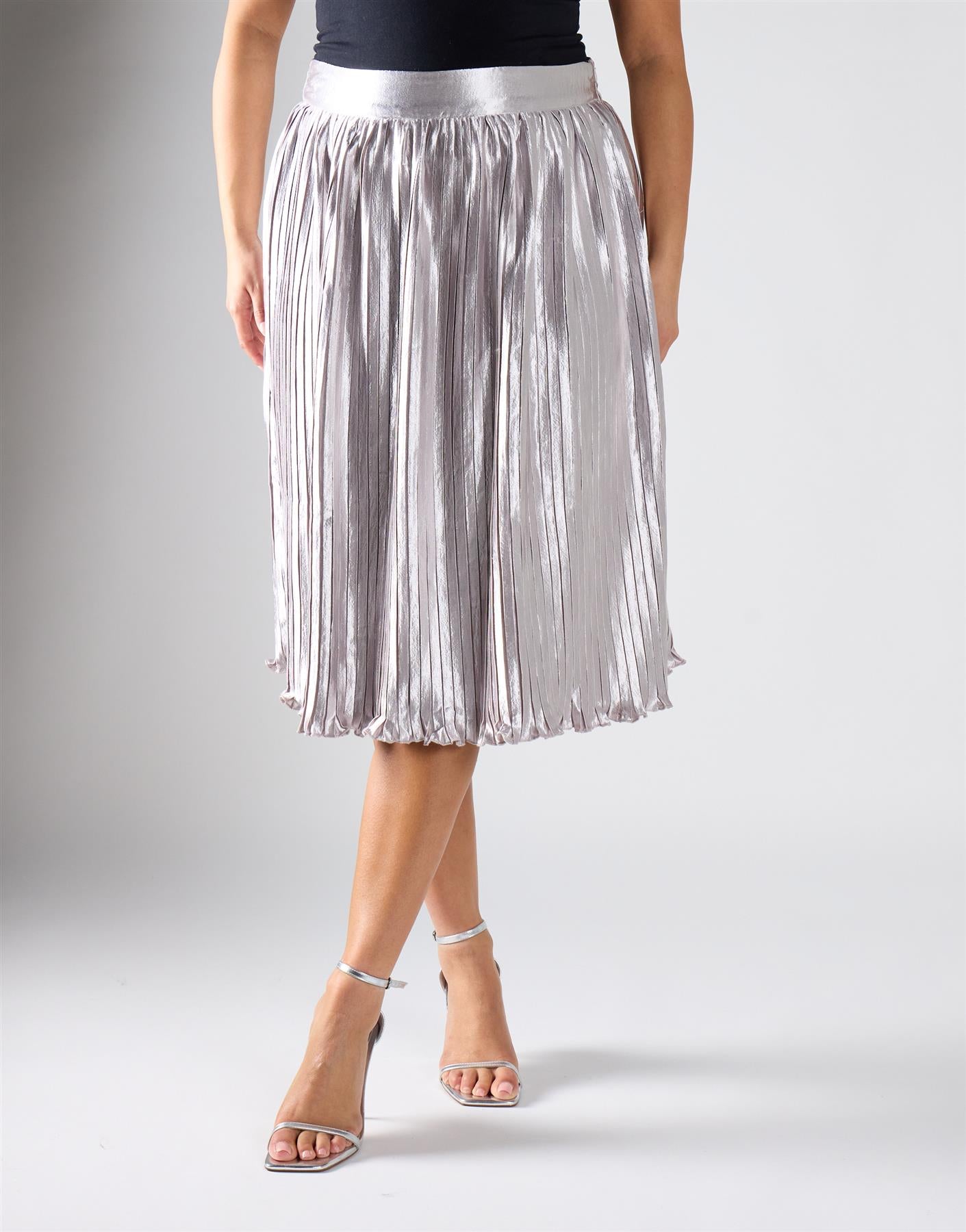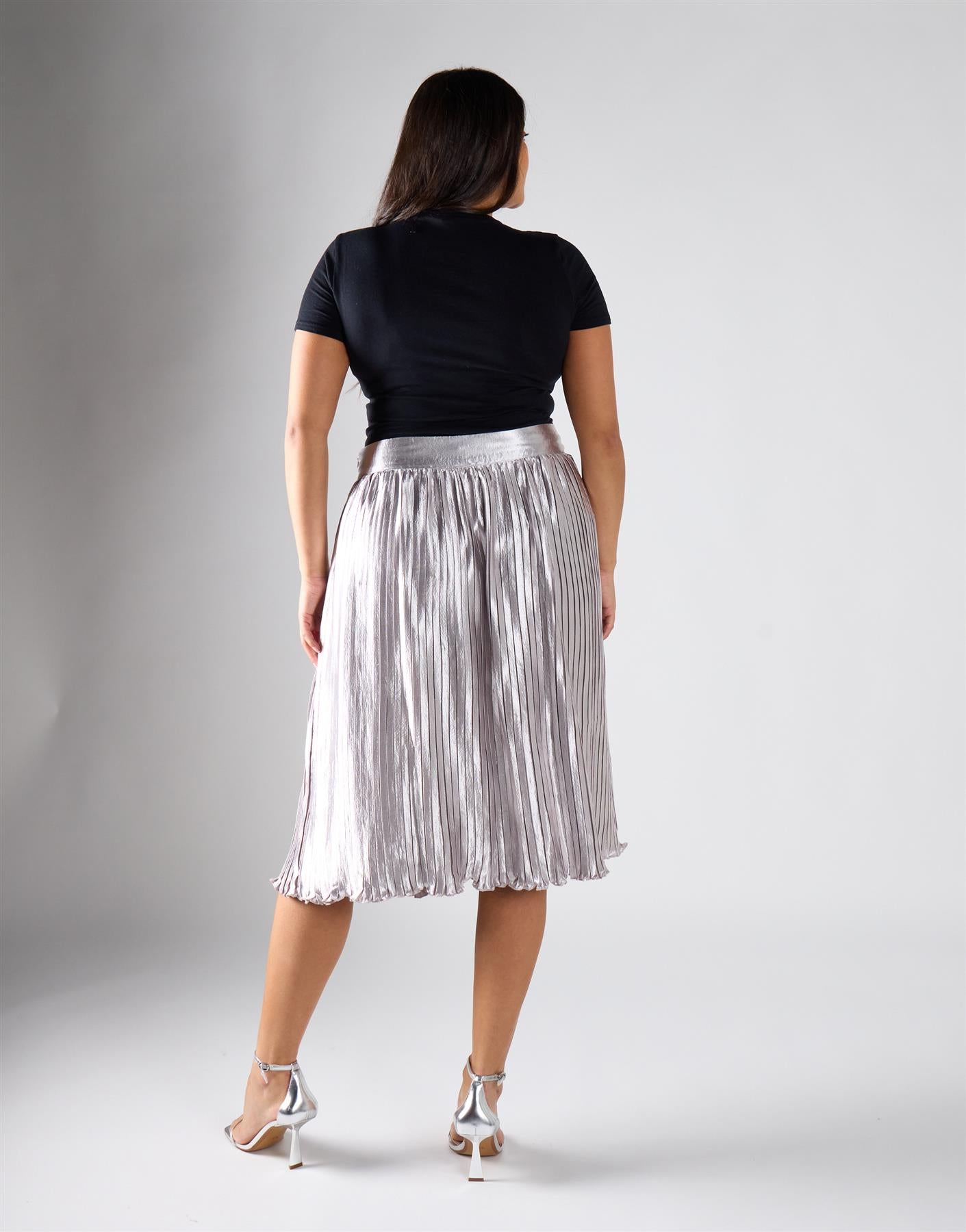 Glamorous Curve Light Silver Pleated Midi Skirt