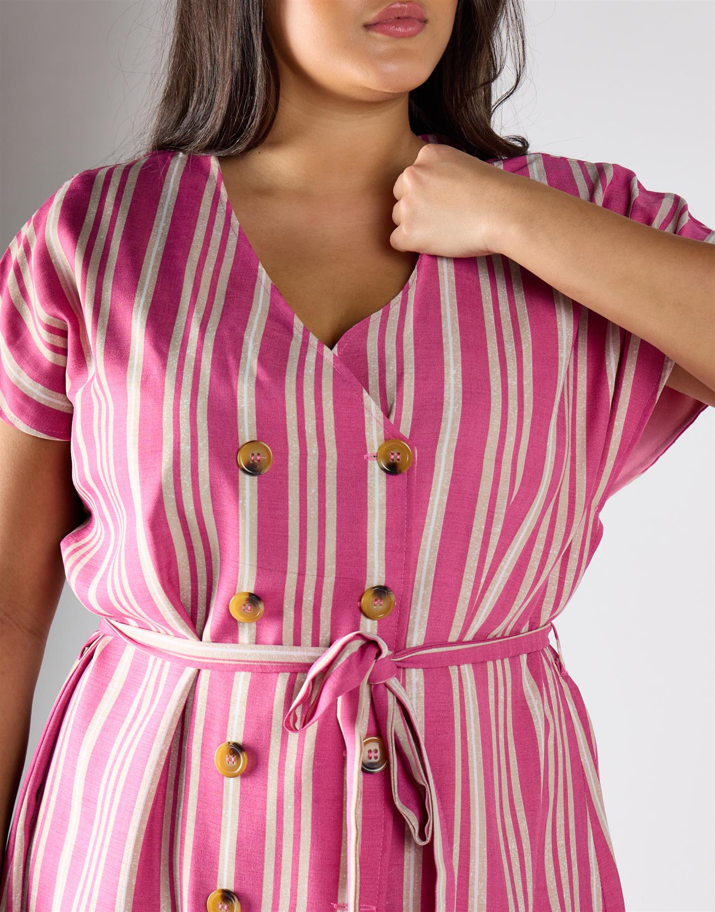 Glamorous Pink Varied Stripe Midi Dress