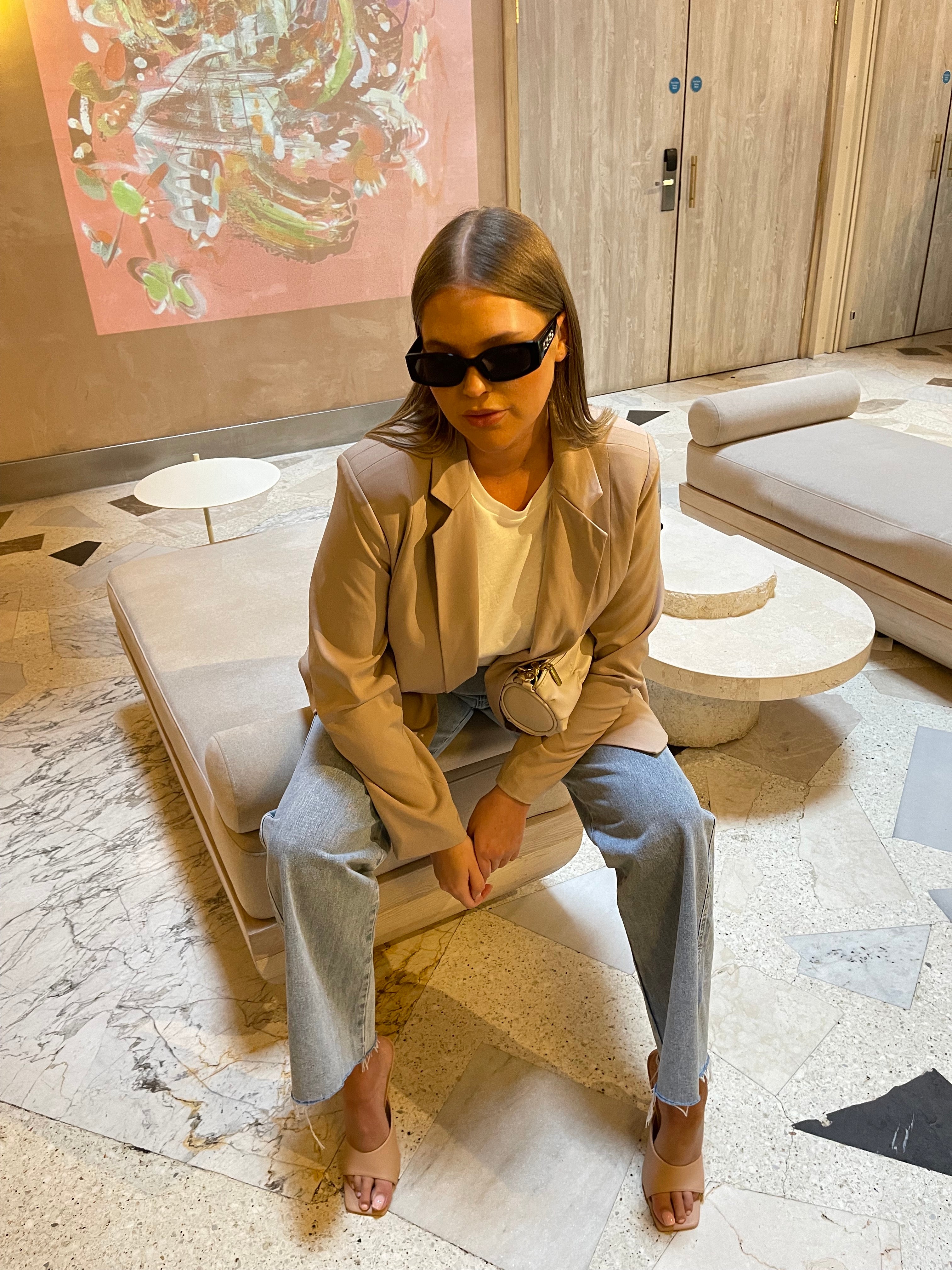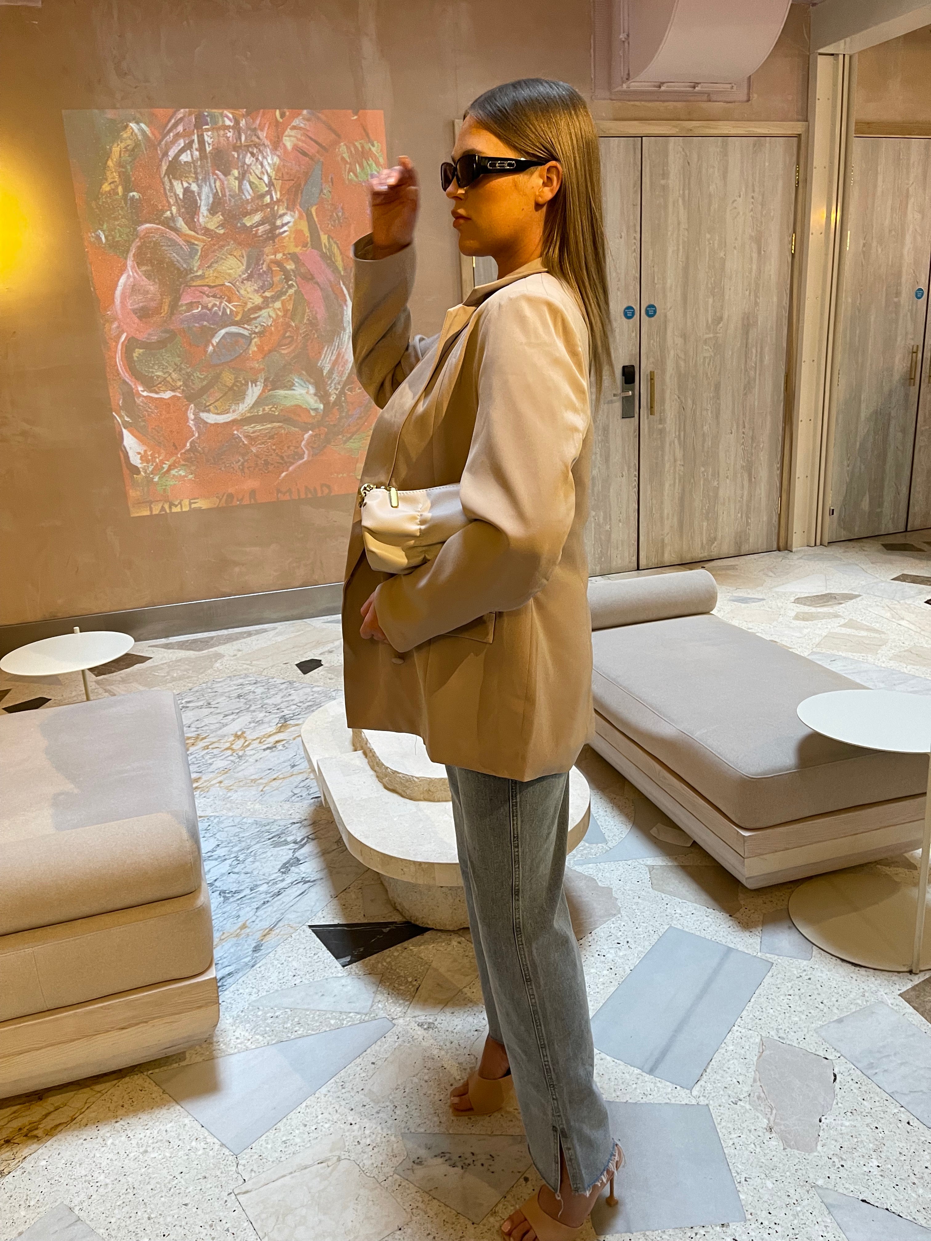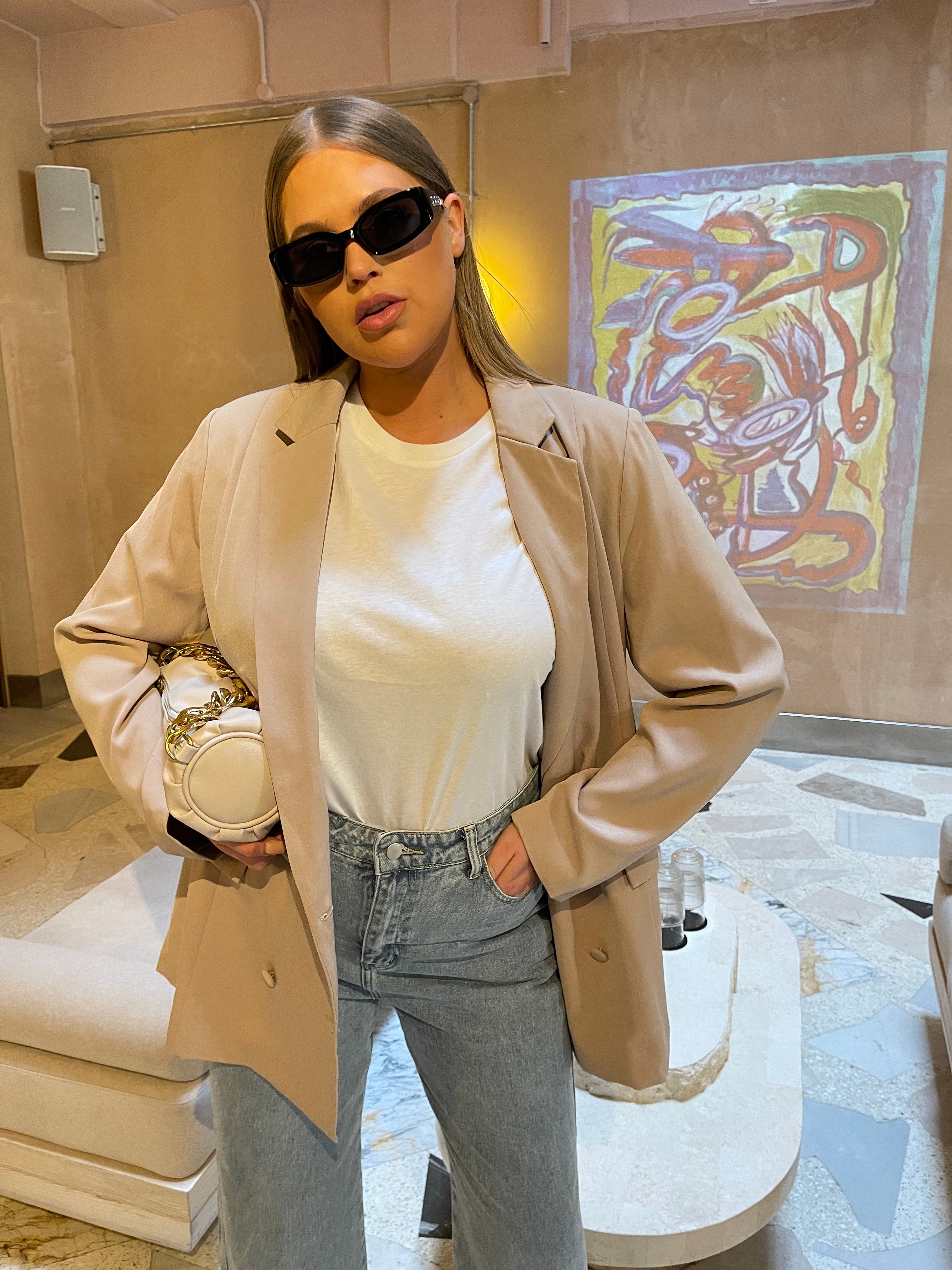 Glamorous Curve Stone Double-Breasted Blazer. A stylish and timeless staple, featuring a double-breasted fit and pockets, this blazer will be your go-to for every occasion. Pair with a white tee, straight-leg jeans, and loafers for an on-trend, chic casual look.