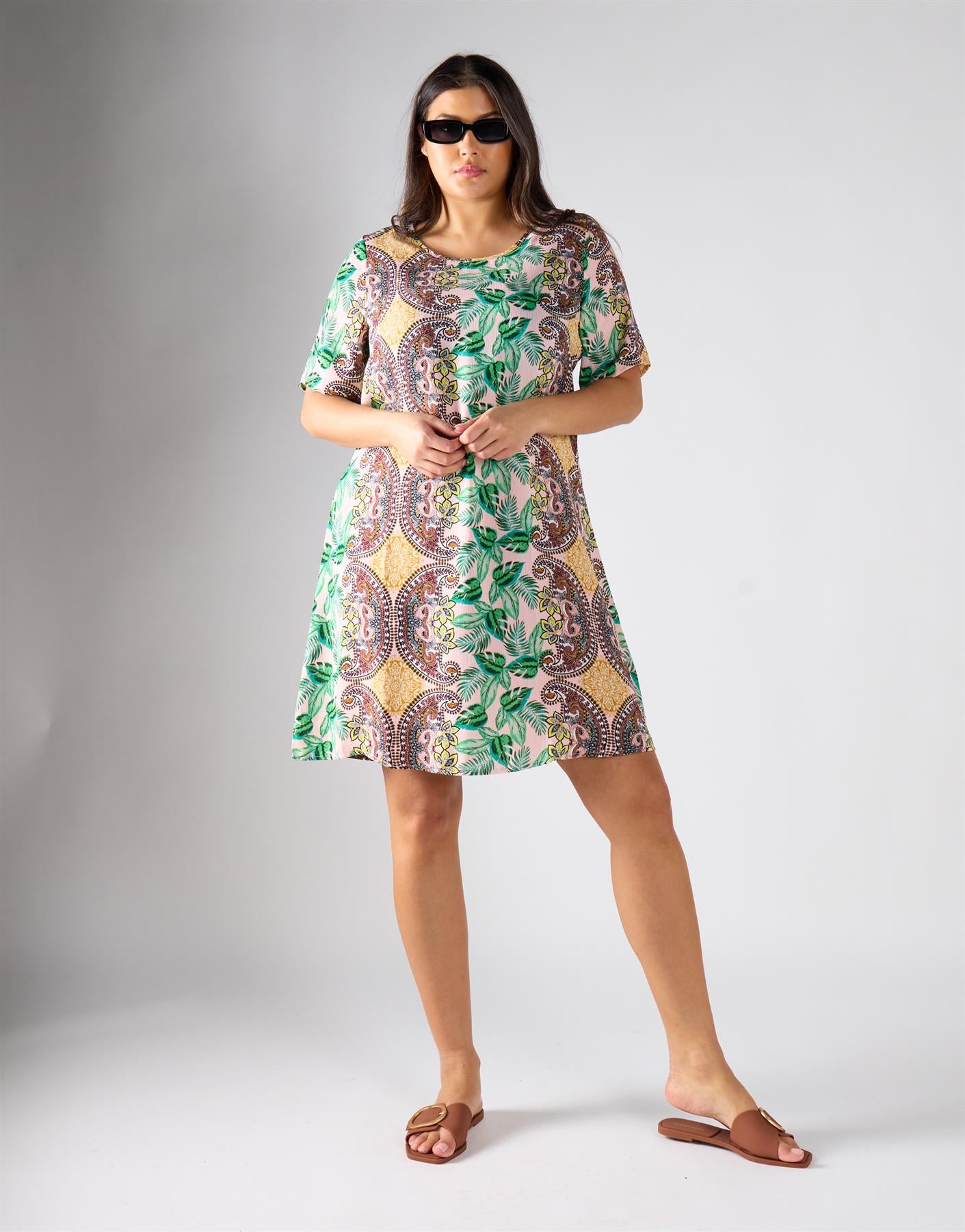 Effortless elegance meets everyday ease in this A-line dress, designed to give you a polished look without any fuss. The round neckline frames your shoulders beautifully, while elbow-length sleeves create a balanced silhouette that feels both comfortable and refined. A lined bodice adds softness against the skin, ensuring all-day comfort as you move through smart casual occasions with confidence. The flattering A-line cut brings a timeless shape that works for multiple settings, allowing you to feel poised and stylish. Style with simple flats or sleek heels to complete a look that’s effortlessly put together.