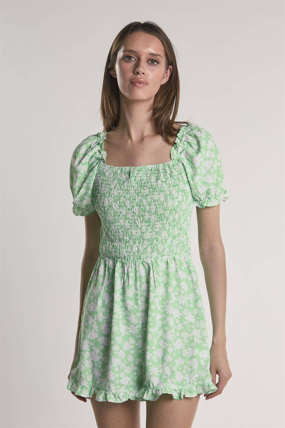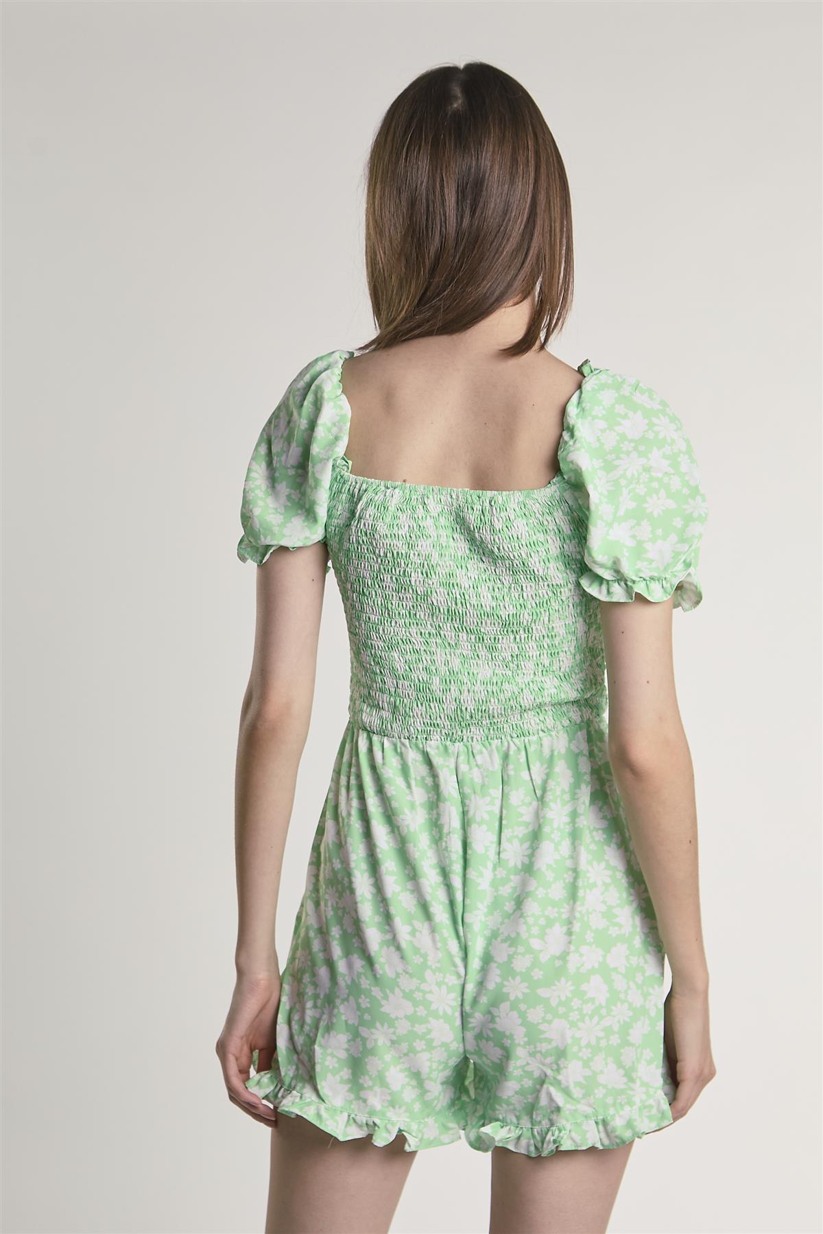 Glamorous Women's Green-Floral Square-Neck Short Sleeve-Playsuit. This green-floral square-neck playsuit brings an easy kind of charm that feels fresh without trying too hard. The puff sleeves add a soft, airy shape, while the shirred bust keeps things comfy with a bit of stretch that moves with you. A ruffled trim along the neckline and hem adds a playful detail that gives it just enough texture without being fussy. The short sleeves make it great for warmer days, and the all-in-one design means no second-guessing your outfit. Pair it with sandals for a relaxed feel or add a small crossbody and some layered jewellery for something a little more styled. It’s light, easy, and ready to go wherever you are.