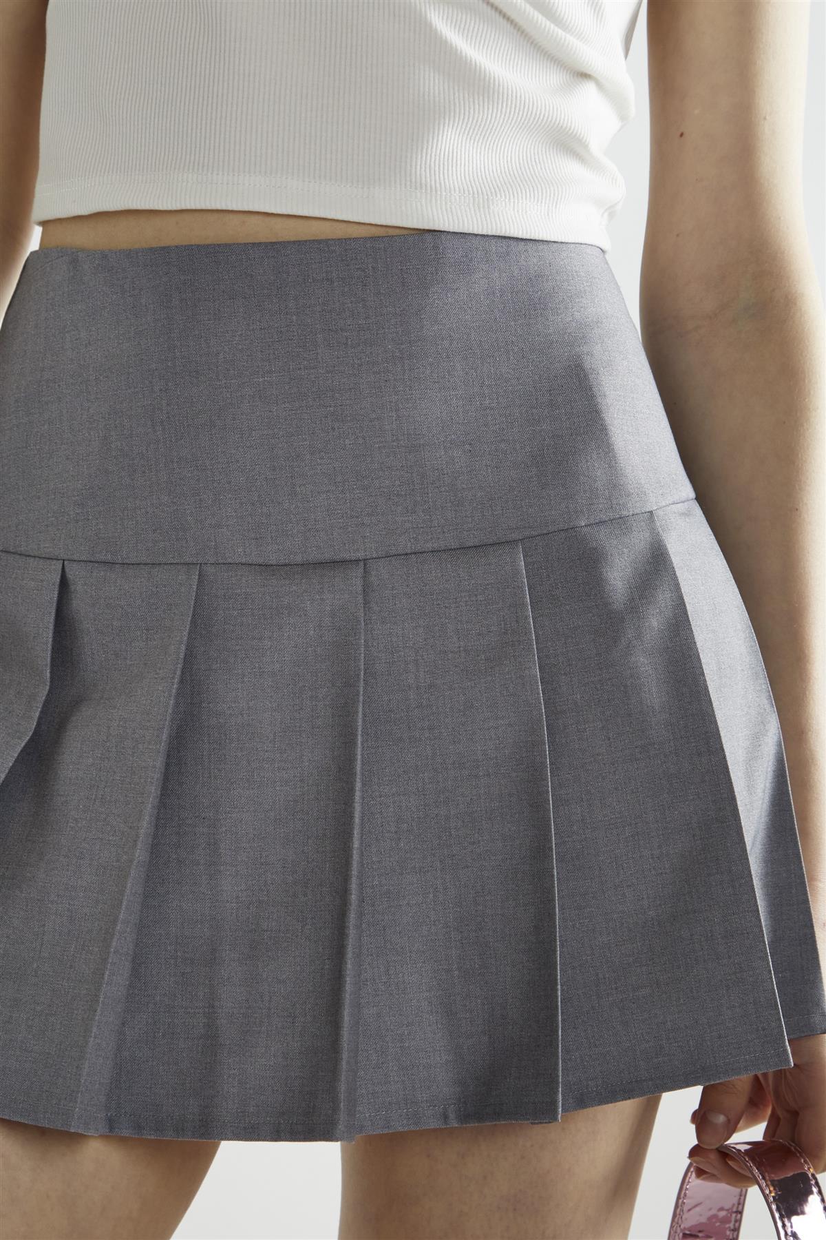 Glamorous Women's Grey Pleated Mini-Skirt . Our Grey Pleated Mini-Skirt is a versatile and stylish addition to your wardrobe. This chic piece features a classic pleated design that adds movement and texture to your look. The mini length is perfect for showing off your legs and creating a youthful, energetic vibe. We've made sure this skirt is fully lined for your comfort and to ensure a smooth, flattering fit. The neutral grey colour makes it easy to pair with a variety of tops and accessories, allowing you to create countless outfits. It's a great choice for both casual and dressier occasions - wear it with sneakers and a t-shirt for a laid-back day out, or dress it up with heels and a blouse for a night on the town. The pleats add a touch of sophistication to the playful mini length, striking a perfect balance between fun and elegance. This skirt is sure to become a staple in your wardrobe, offering both style and practicality in one lovely package.