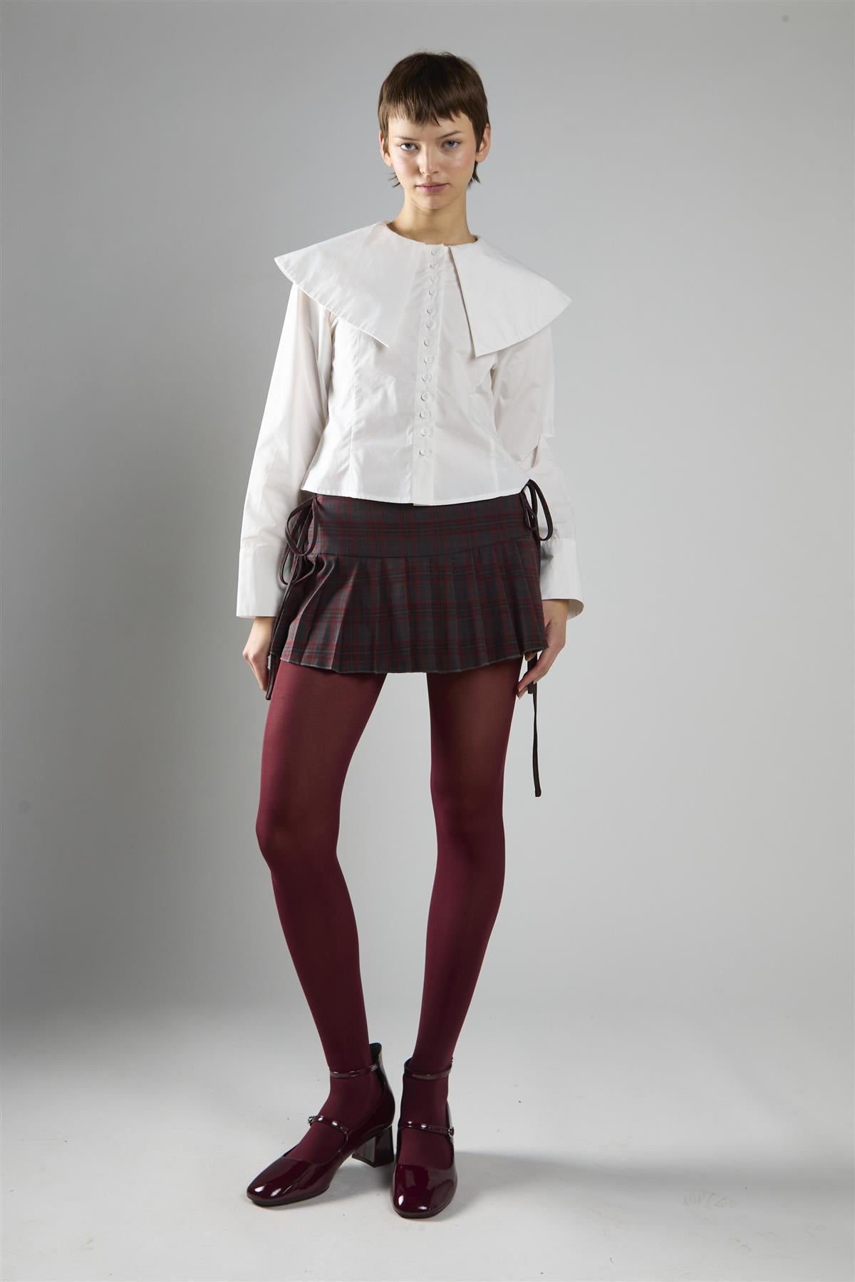 Grey Red Check Pleated Mini Skirt