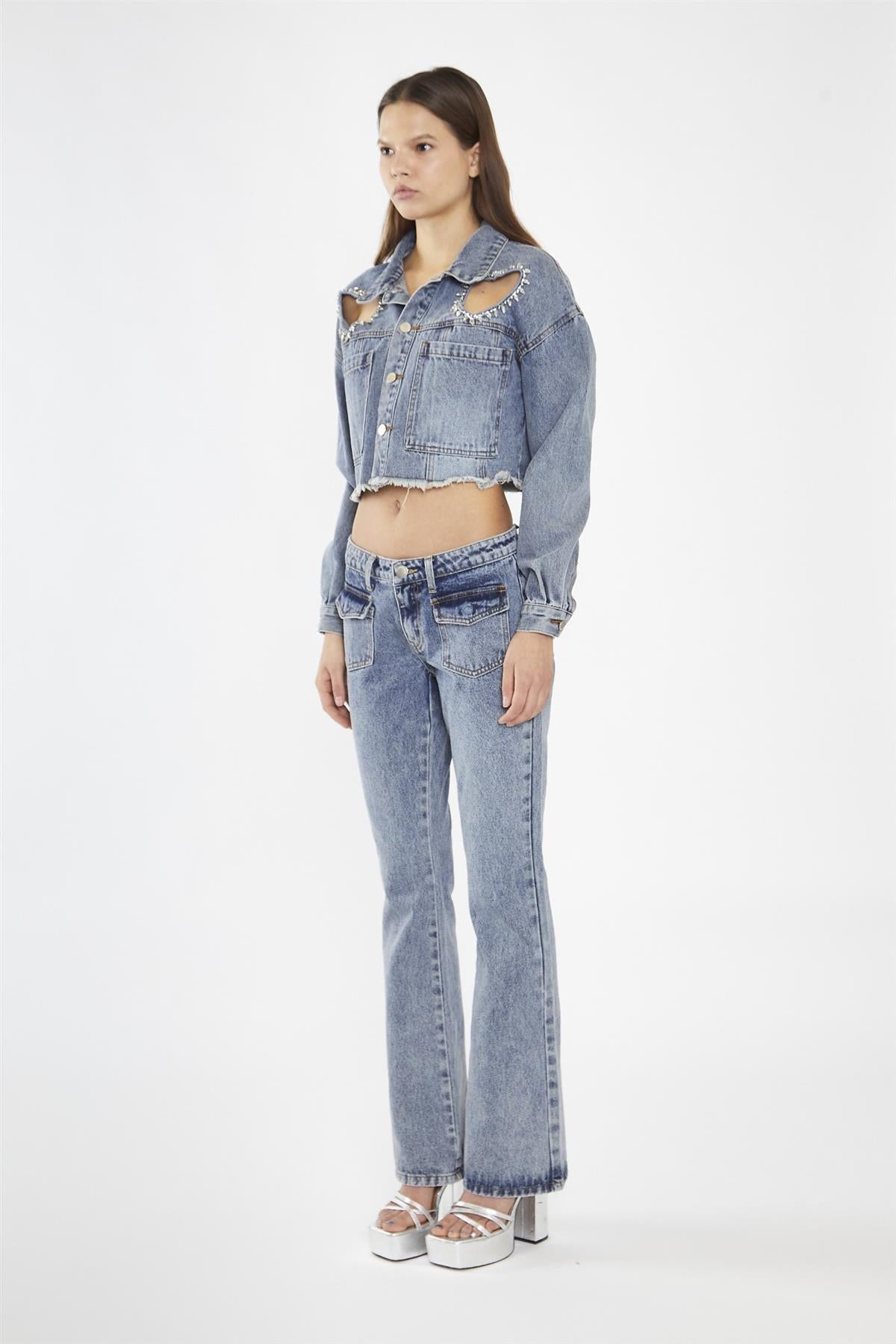 Glamorous Women's Heavy-Vintage Wash Heart Cut-Out Crop-Jacket. Add a touch of retro charm to your look with this heavy vintage wash cropped jacket. The heart cut-out detail adds a playful twist, while the diamante trim adds a hint of sparkle. The cropped length and frayed hem give it a cool, edgy vibe. Slip it on over your favourite tee for a casual day out, or pair it with a flirty dress for a night on the town. With handy pockets, it's both stylish and practical. Effortlessly cool and undeniably trendy, this jacket is a must-have for your wardrobe.