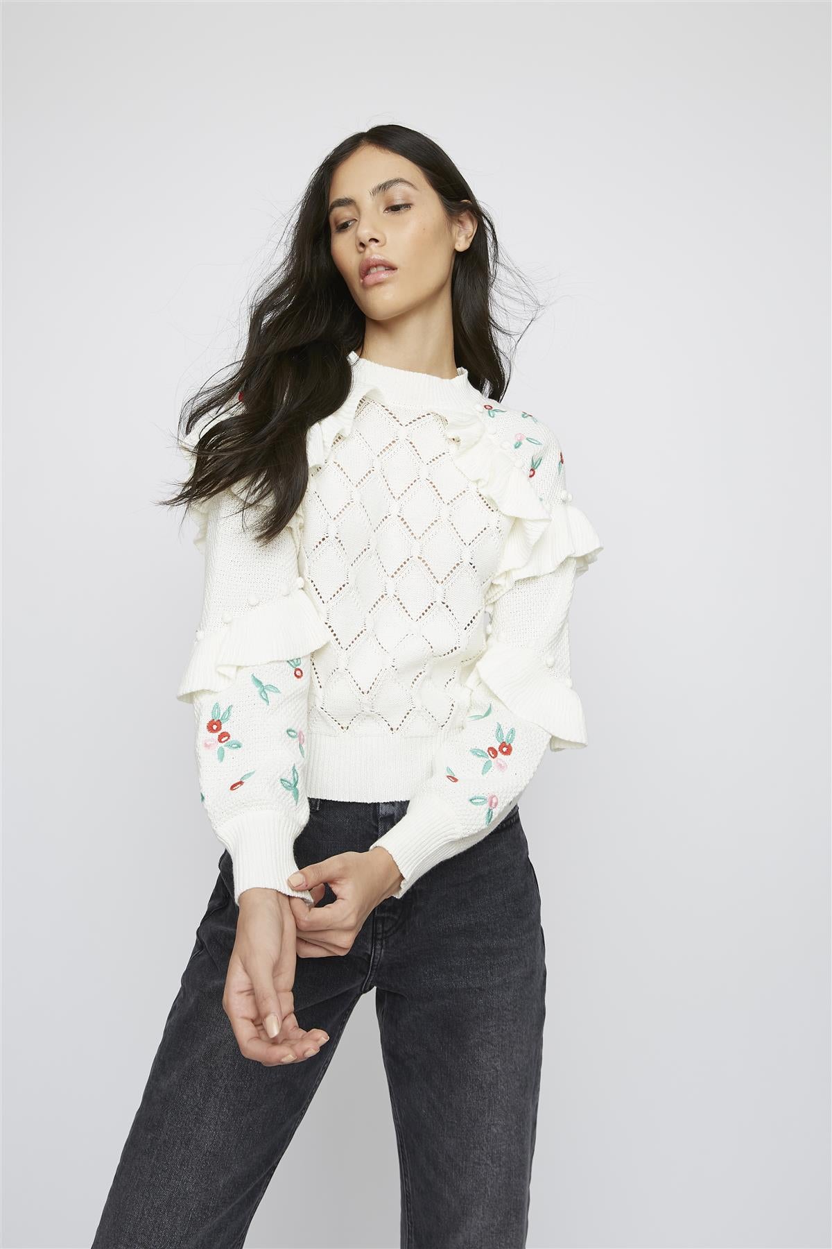 Ivory Ruffle-Mini-Floral Long Sleeve-Jumper