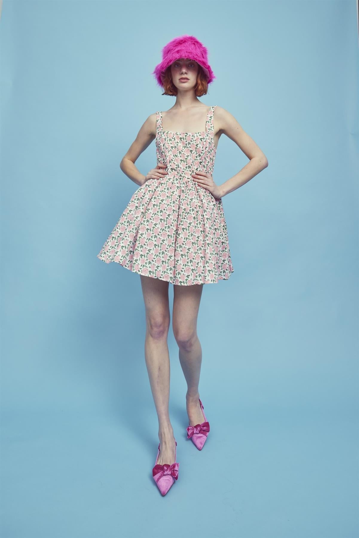 Collective the Label Women's Jamie Corset Mini Dress -Pink/Green. Elevate your wardrobe with this timeless corset style mini dress, crafted from the finest fabrics for a fit that flatters. Featuring boned corsetry details , a square neckline and a timeless silhouette, this mini dress exudes sophistication and elegance and guarantees you a show-stopping look. You don't need to look any further for this seasons on trend piece!