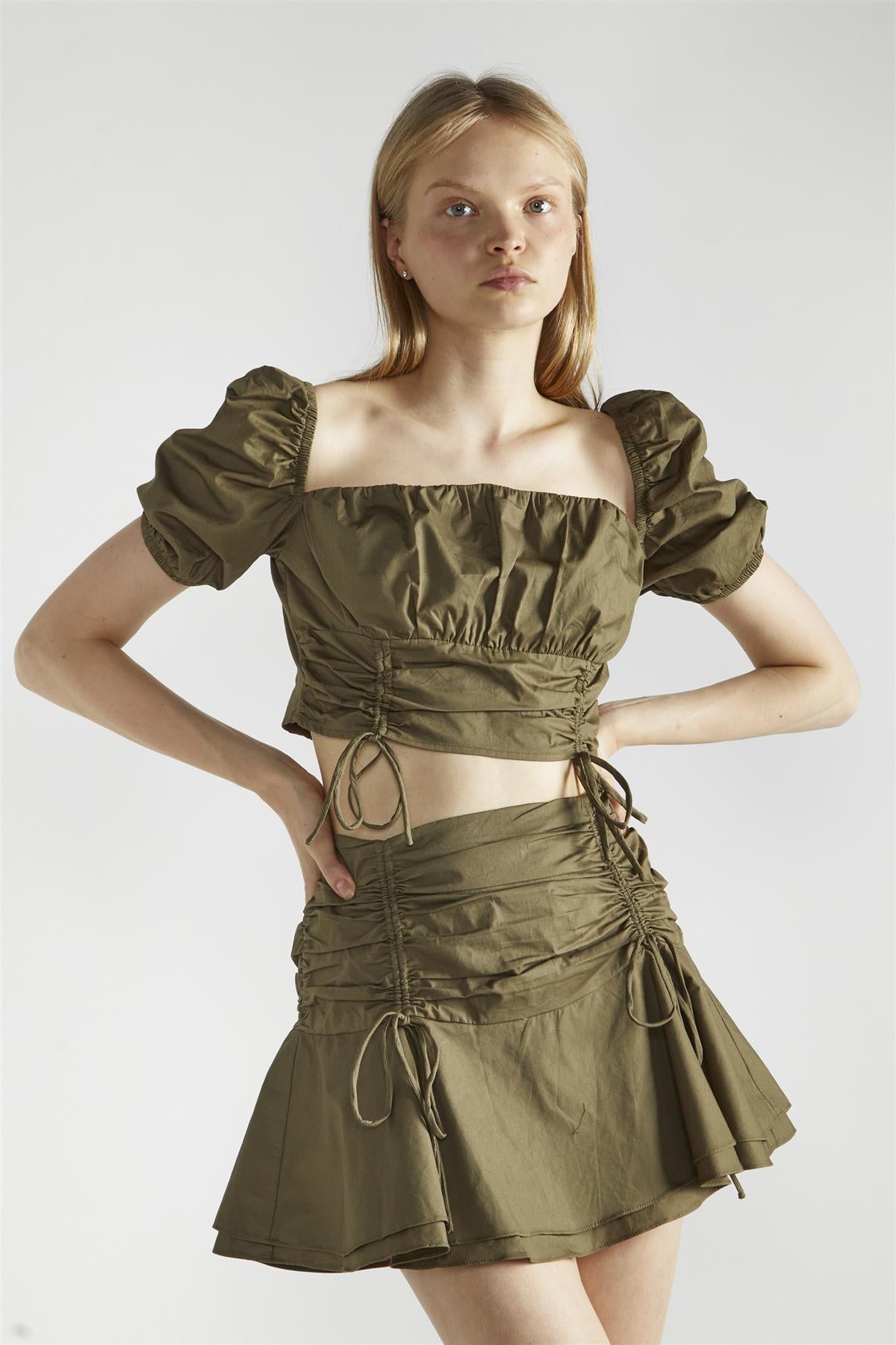 Glamorous Care Women's Khaki Square-Neck Crop-Top. This khaki crop top is like a cool breeze for your summer wardrobe. It's the perfect mix of casual and chic, with a square neckline that adds a modern edge to your look. The short statement sleeves are real show-stoppers - they bring a touch of drama to an otherwise simple piece. But the best part? It's adjustable, so you can find your perfect fit every time you wear it. This top is a versatile little number that's ready for anything. Pair it with the matching skirt for a coordinated look that's perfect for outdoor brunches or gallery hopping. Or mix it up with your favourite high-waisted jeans or shorts for a more laid-back vibe. The neutral khaki colour makes it a team player in your closet, ready to pair with bold prints or keep things sleek and monochrome. It's the kind of top that makes you feel put-together without any fuss - perfect for those days when you want to look good without overthinking it.