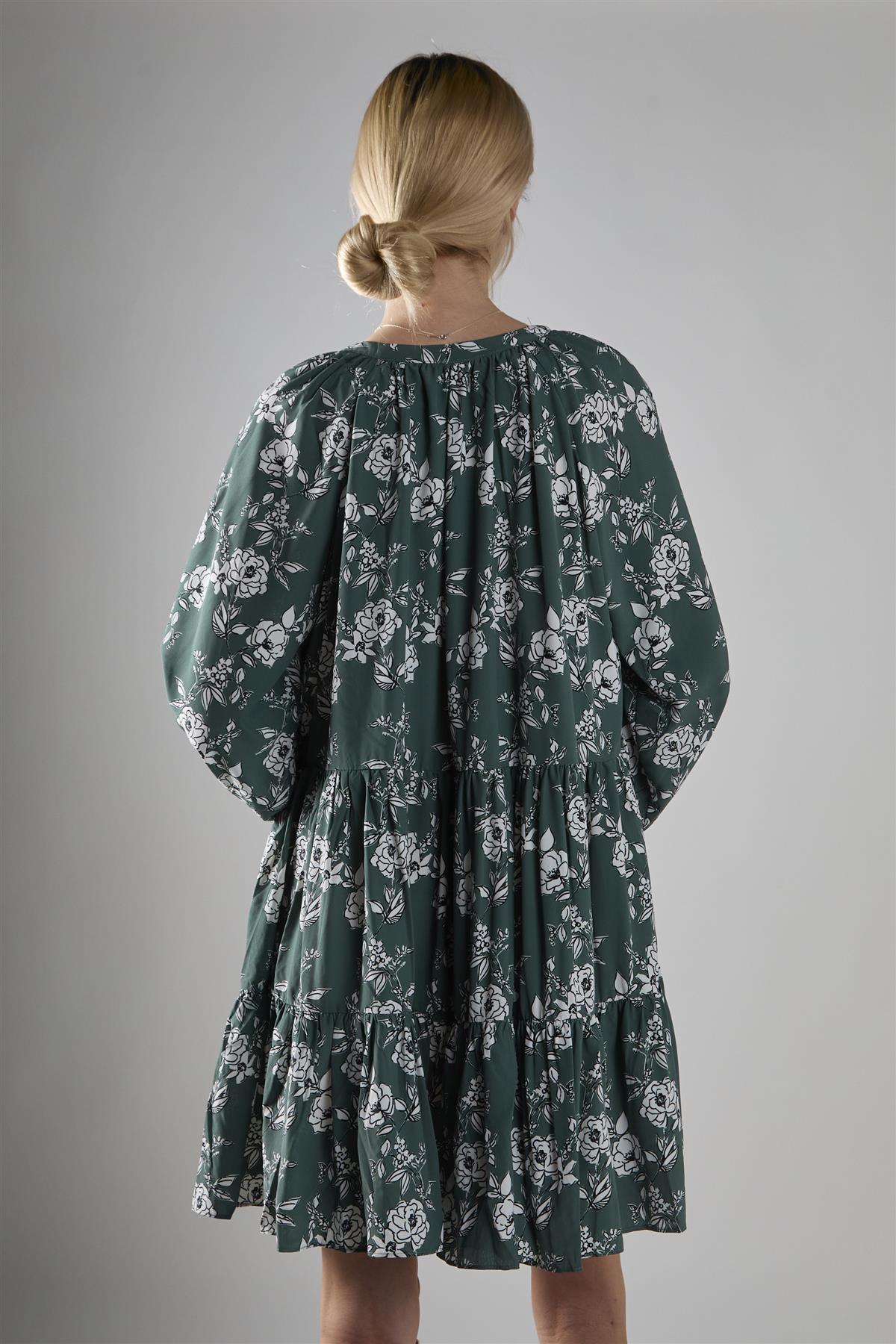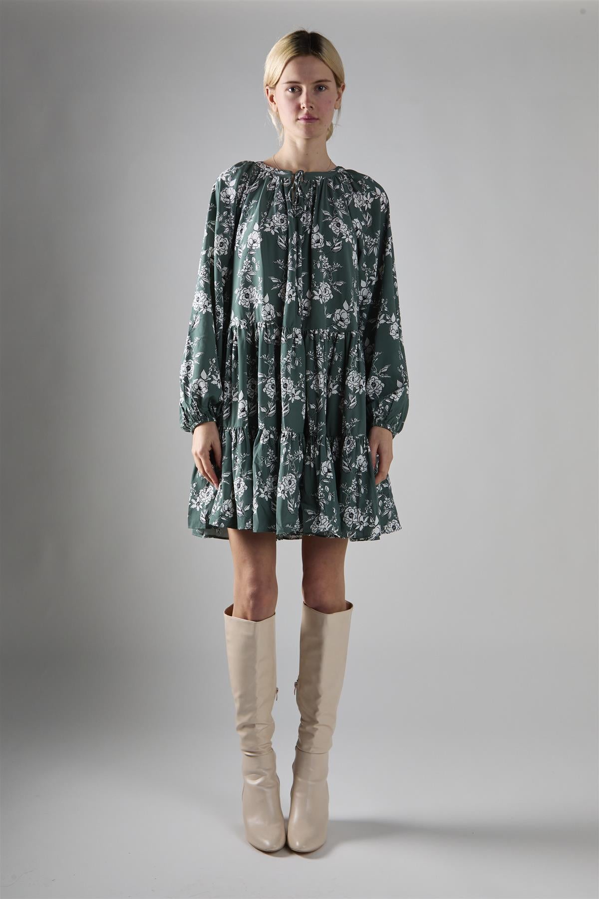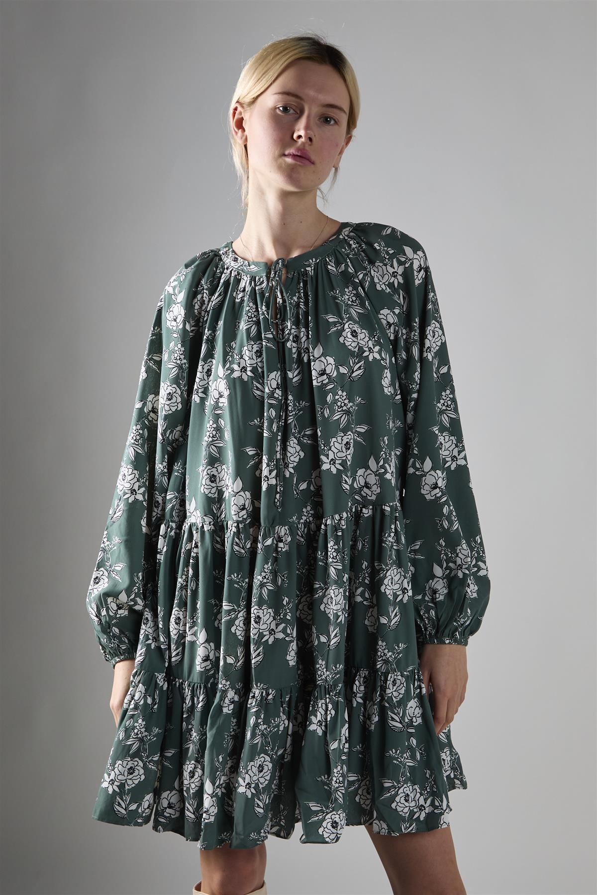 Glamorous Women's Khaki White Floral Poplin Tiered Mini-Dress. This charming khaki and white floral poplin mini-dress is a delightful addition to your summer wardrobe. The playful tiered design adds a touch of whimsy and movement, perfect for those carefree sunny days. Long sleeves provide a bit of coverage while keeping the look breezy and relaxed. The tie front detail allows you to adjust the fit to your liking, creating a flattering silhouette. The floral pattern in khaki and white offers a subtle, earthy elegance that's versatile enough for various occasions. This dress is a go-to choice for picnics in the park, casual brunches with friends, or even as a stylish beach cover-up. Pair it with sandals and a wide-brimmed hat for a laid-back daytime look, or dress it up with wedges and statement earrings for an evening out. The lightweight poplin fabric ensures comfort throughout the day, making this dress a true summer staple.