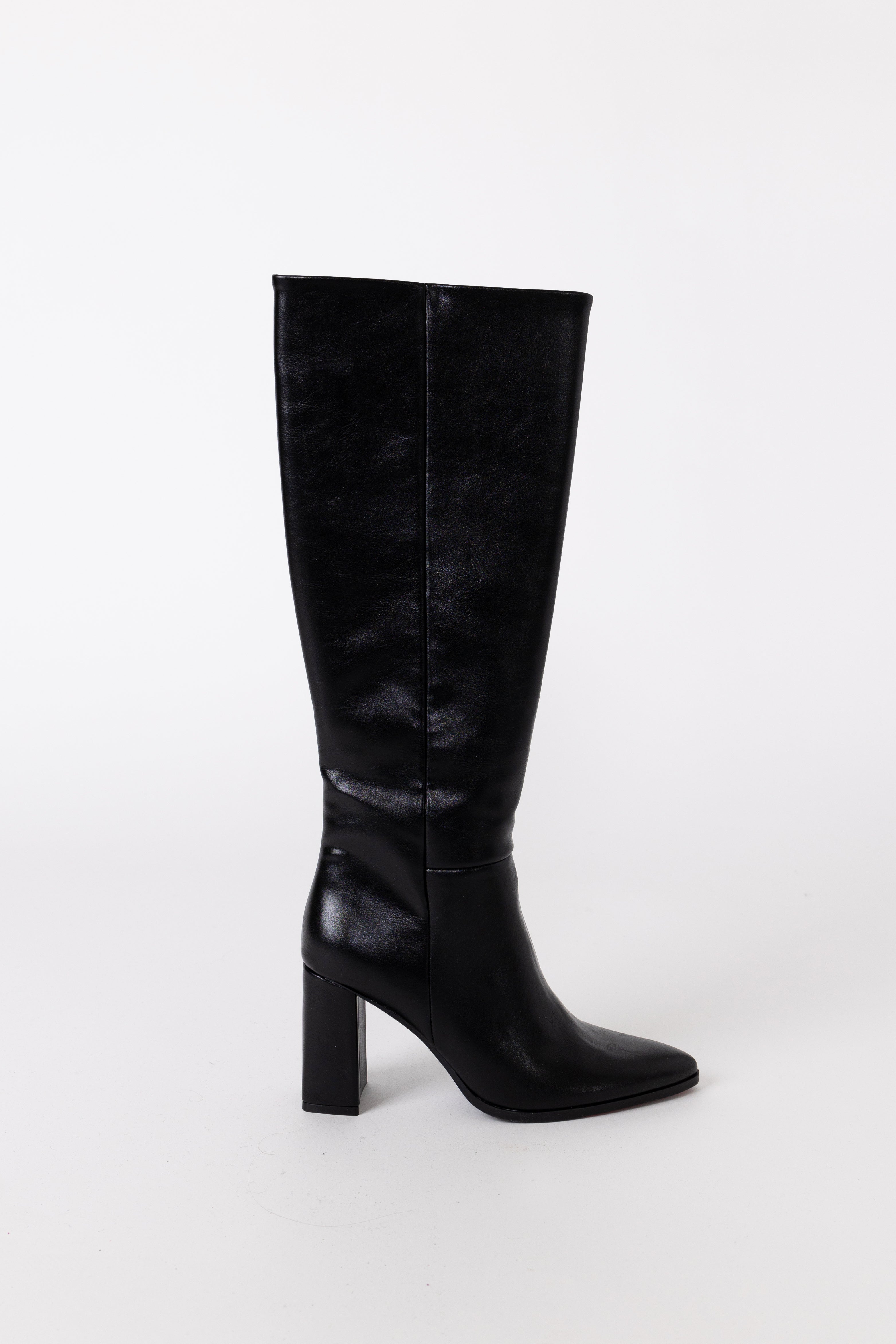 Black Knee High Pointed Toe Boots