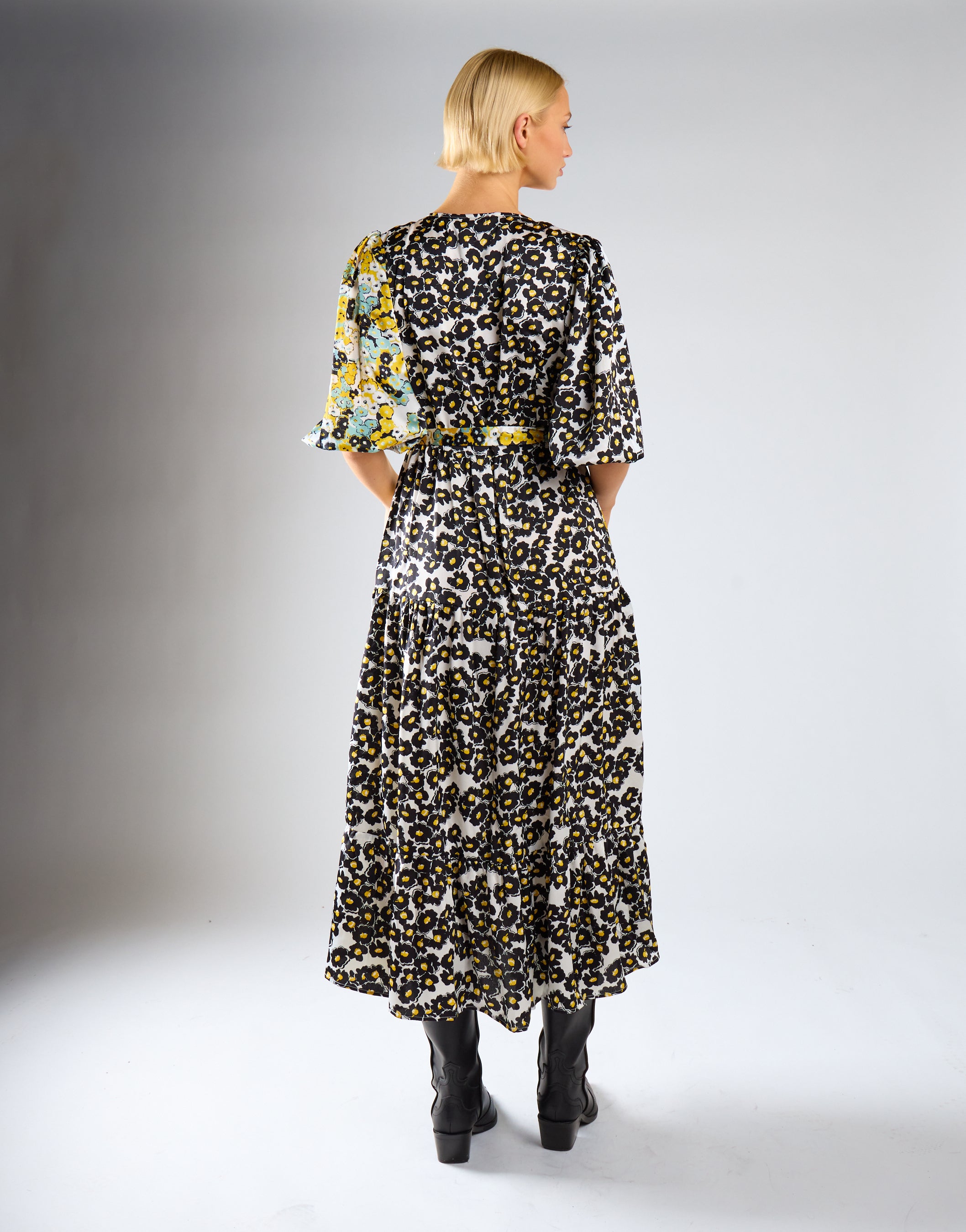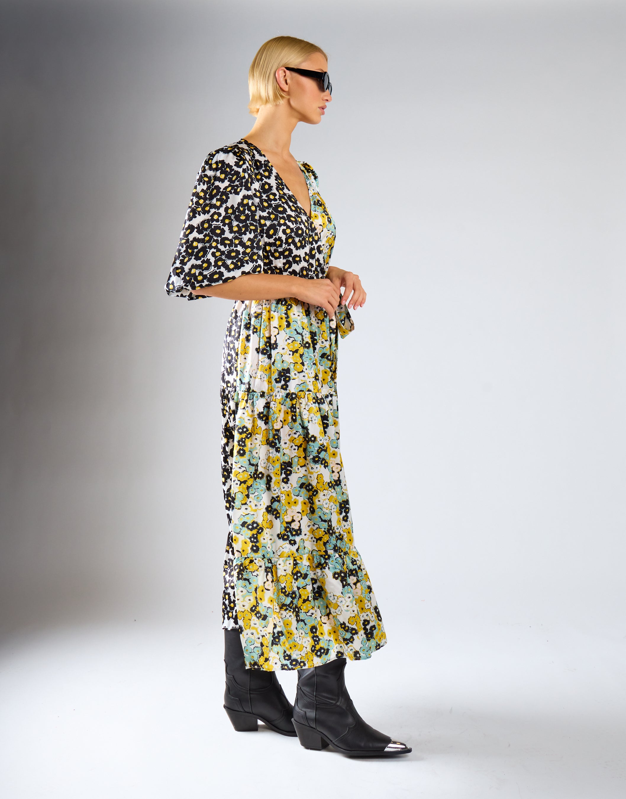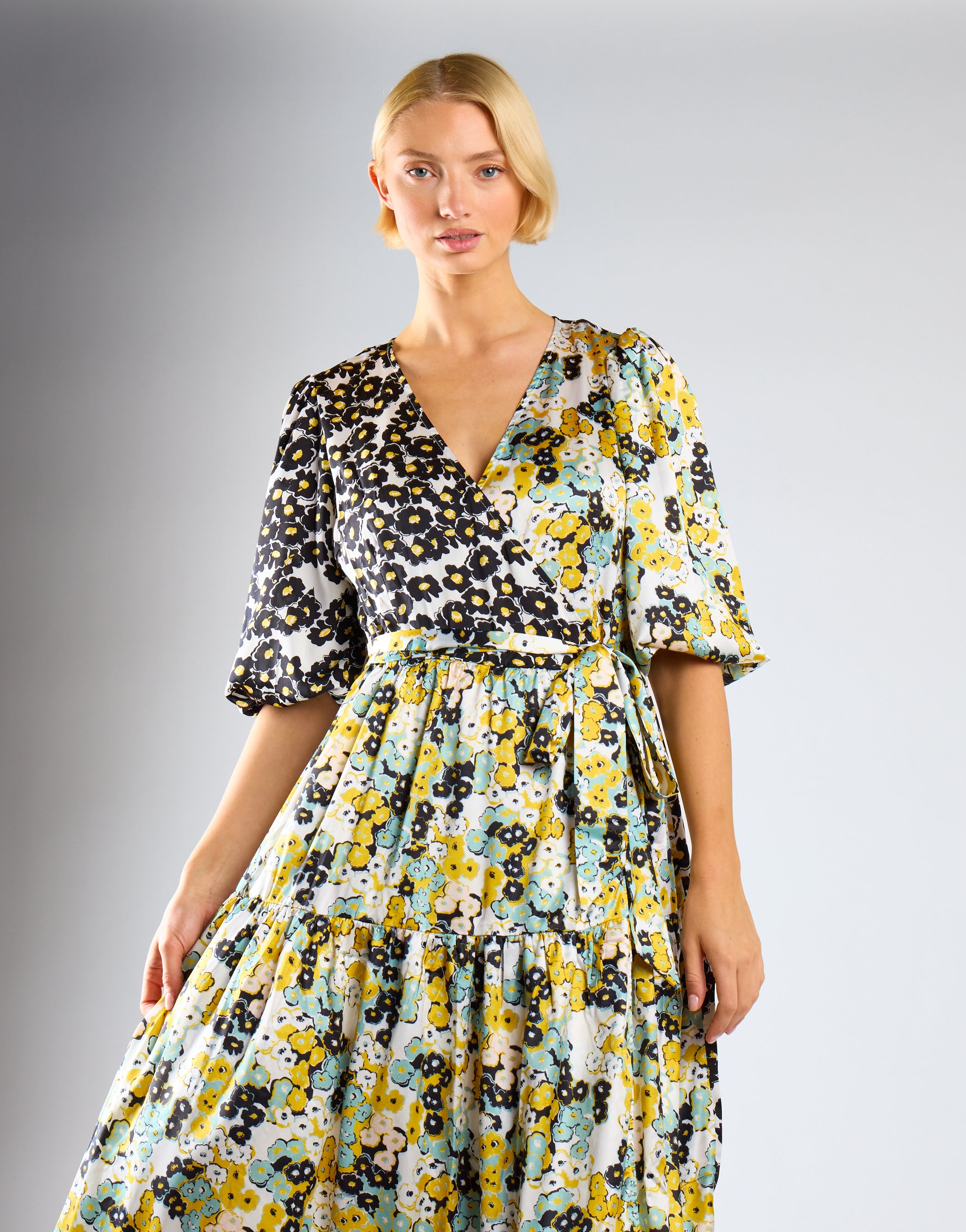 Glamorous Mono Mustard Floral Wrap Front Tiered Midaxi Dress