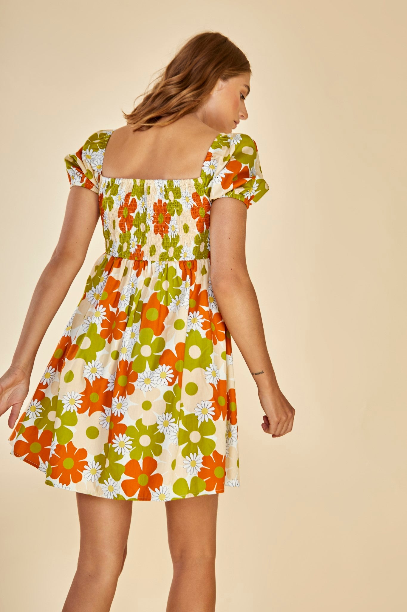 Glamorous Care Retro Daisy Floral Smocked Empire Line Mini Dress. Opt for a sustainable style with this gorgeous daisy print mini dress. Featuring a smocked bodice, empire line fit and puff sleeves, we love this piece here at Glamorous. Pair with strappy sandals for a effortlessly chic look.