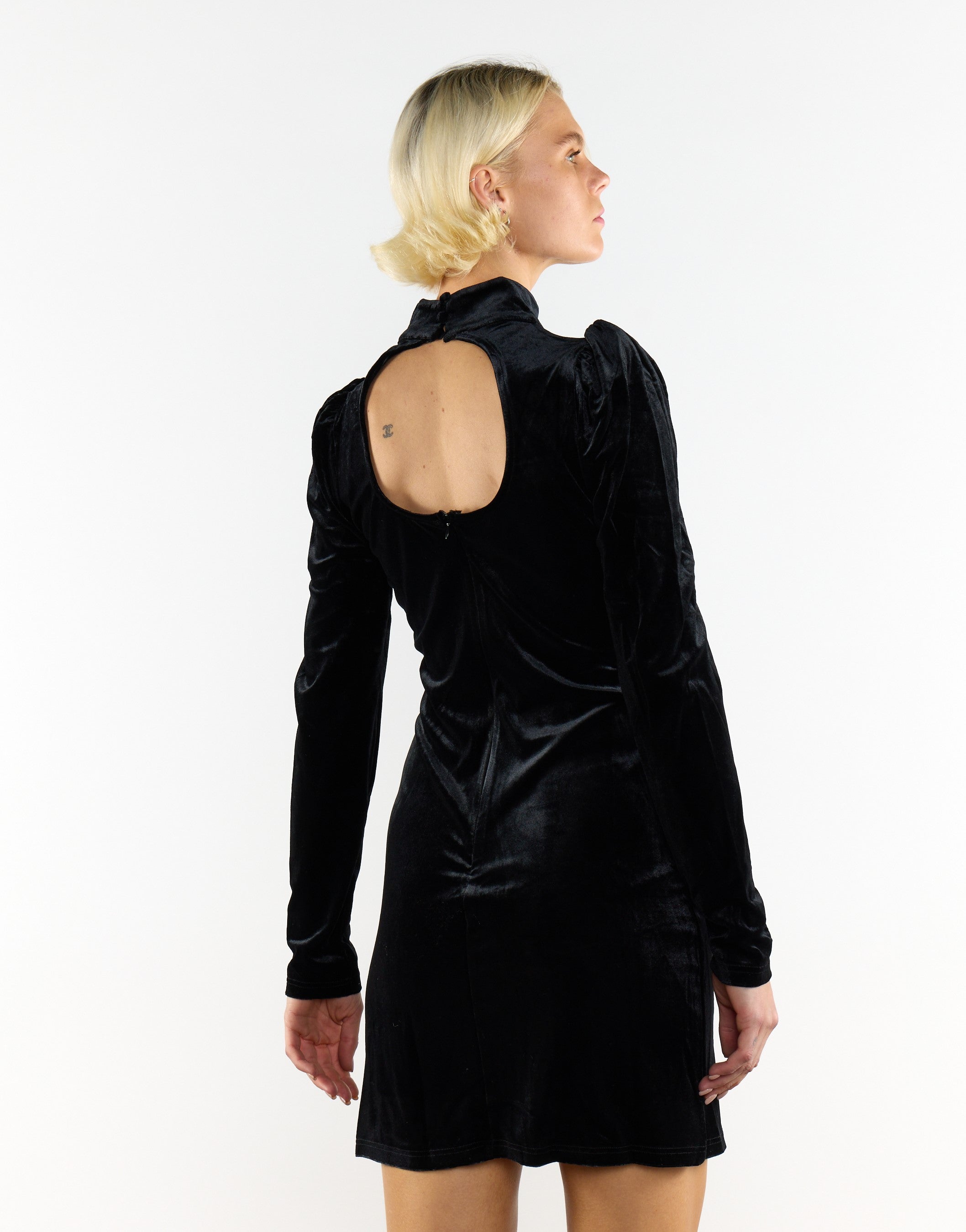 Glamorous Black Velvet Puff Shoulder Long Sleeve Mini Dress