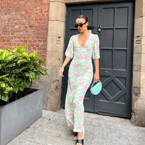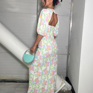Glamorous Women's Multi Blurred Floral Maxi Dress. Join our positive journey towards reducing the impact that fashion has on our planet with this sustainable maxi dress. Featuring puff sleeves with open back detail and a V-neckline in a gorgeous blurred floral print, we love this piece here at Glamorous! Elevate the look with some mule sandals and a cute strappy bag for an on-trend vibe.