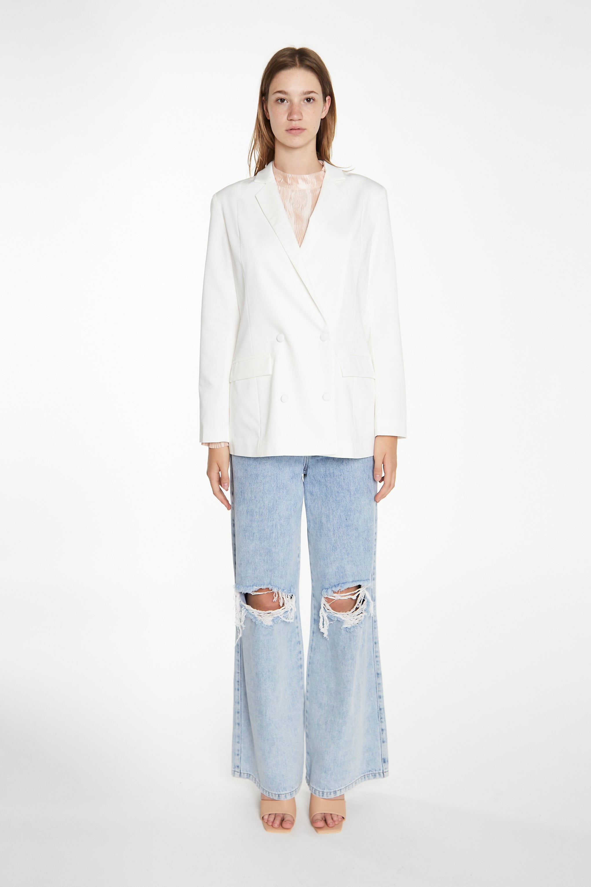 Glamorous Modesty Women’s White Double-Breasted Blazer. A stylish and timeless staple, featuring a double-breasted fit and pockets, this blazer will be your go-to for every occasion. Style with matching co-ord trousers for sleek co-ord look or pair with jeans for a more casual outfit.