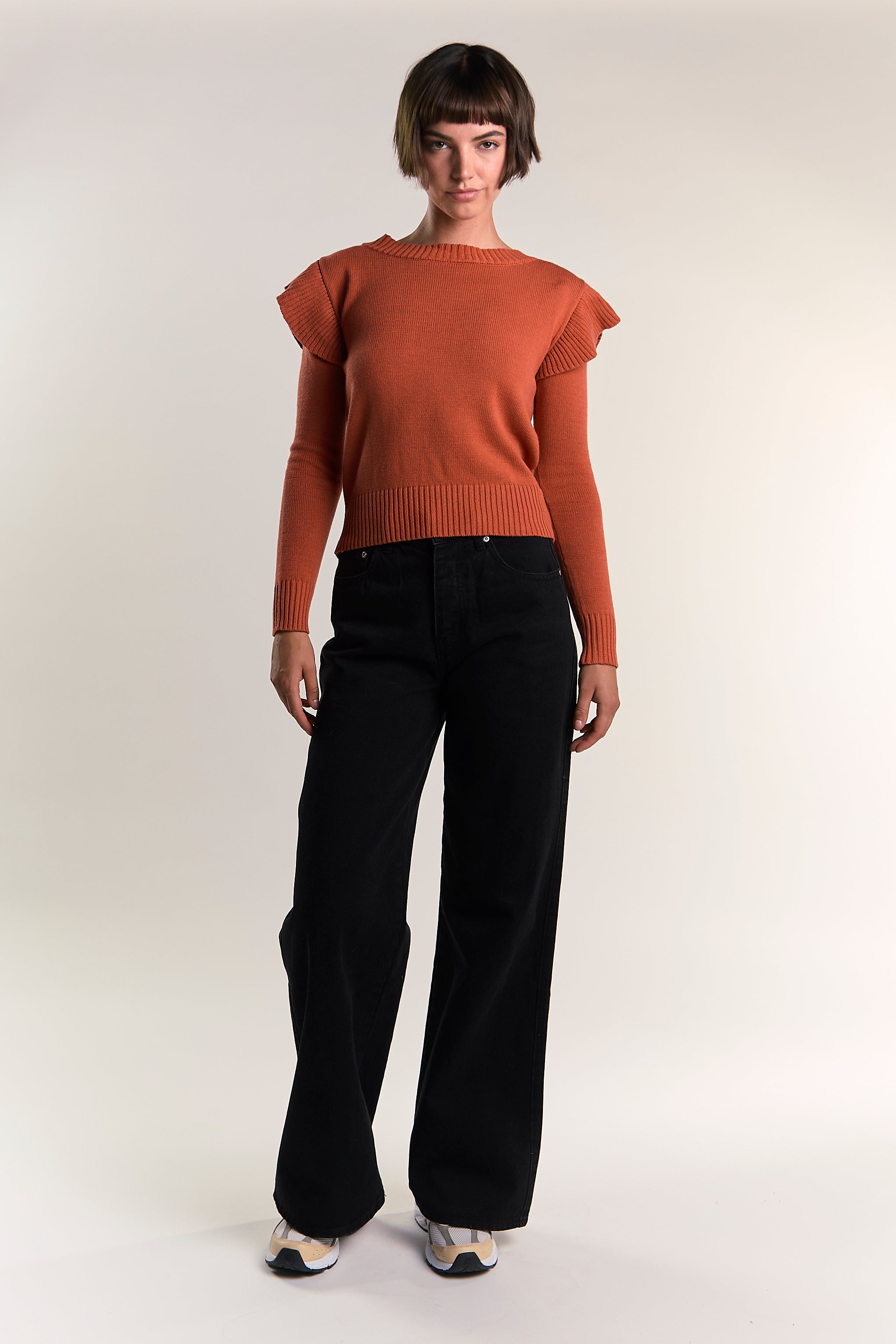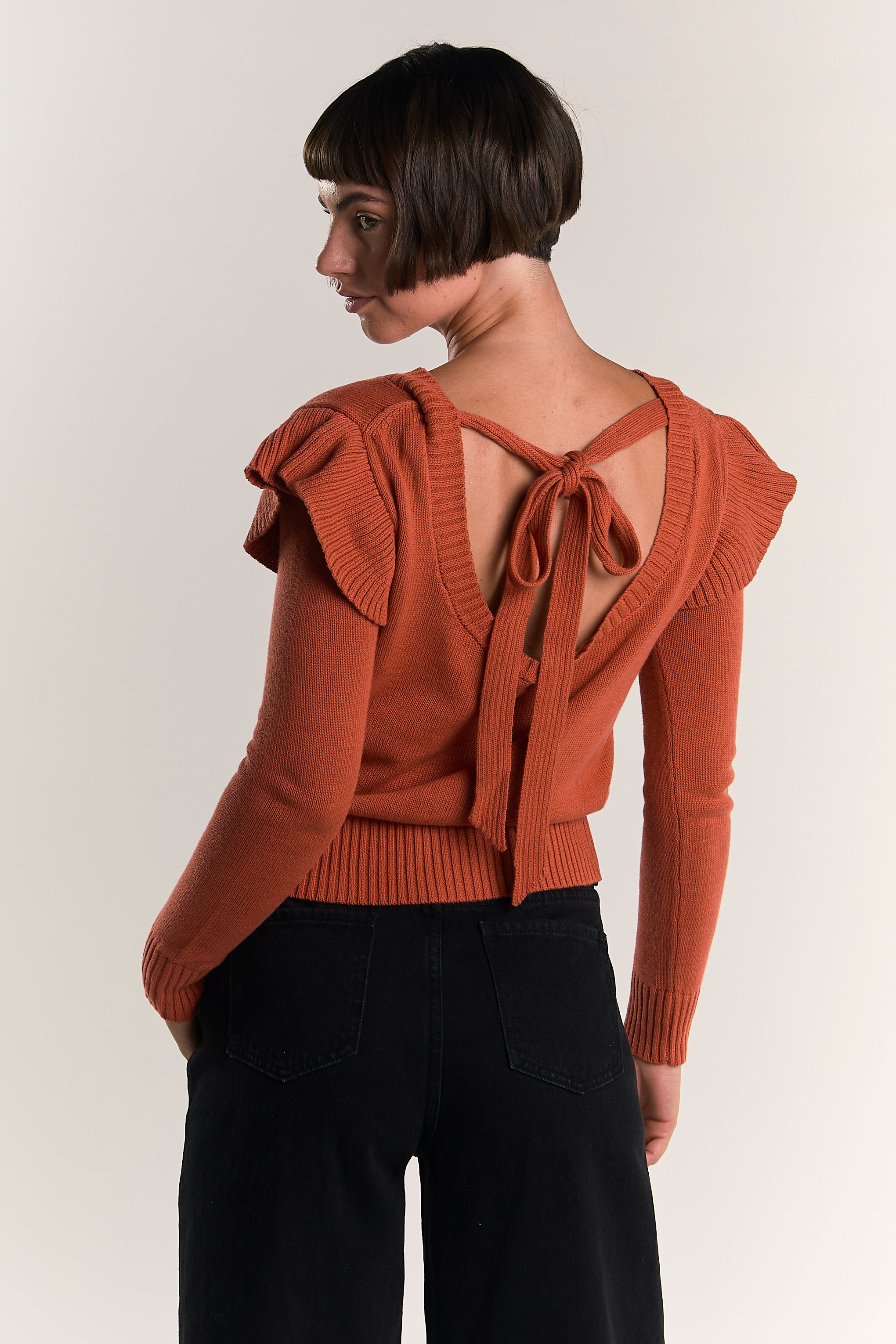Glamorous womens Orange Rust Ruffle Long Sleeve Jumper. This jumper is perfect for your wardrobe this season. Featuring an on trend colour and flattering ruffle sleeve fit, this jumper is perfect for you. Pair with a mini skirt and chunky boots for the perfect on trend look.