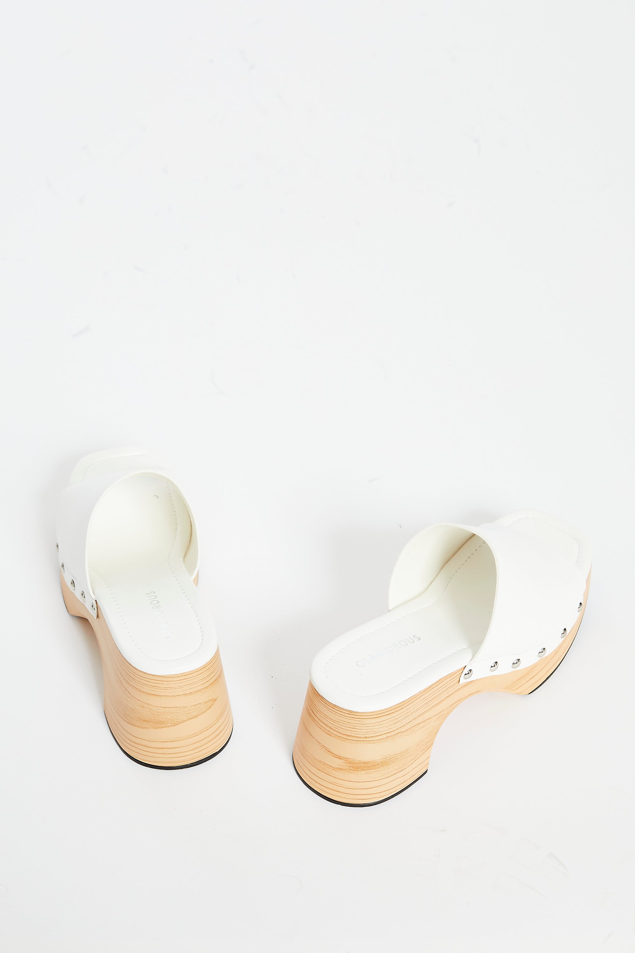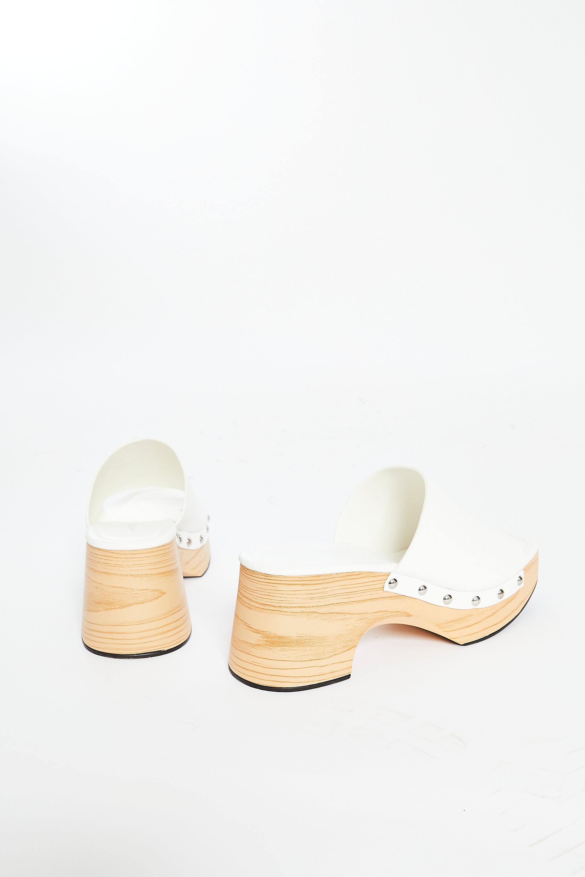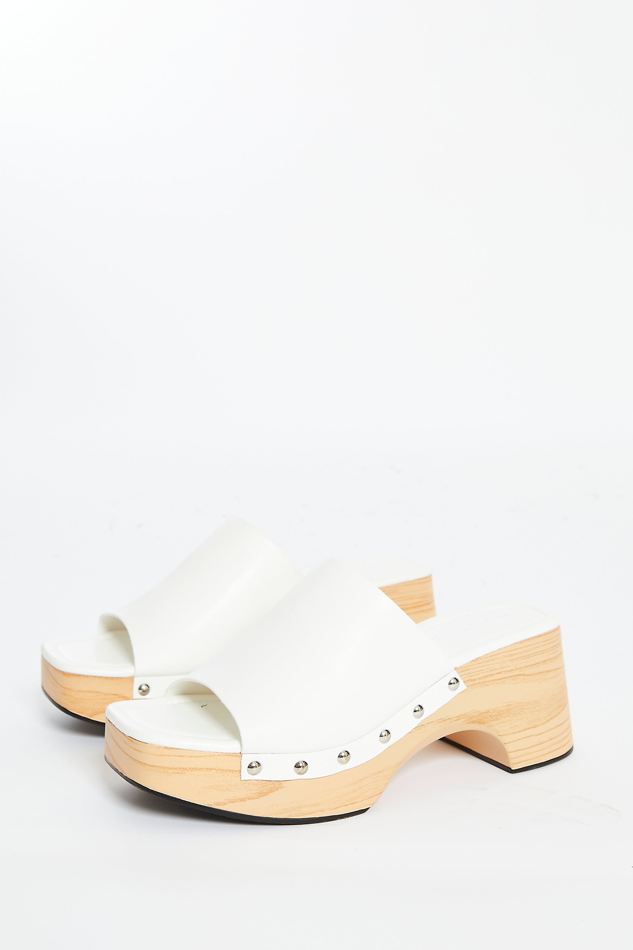 Glamorous White Open Toe Mule Clog Sandals. Its time to refresh your summer wardrobe with these gorgeous sandals. Featuring a thick supportive strap and block heel in a slip-on mule style, these clog sandals are the ultimate wardrobe staple. Looks great styled with jeans and a nice top or dressed up with your favourite summer dress to really make a statement!
