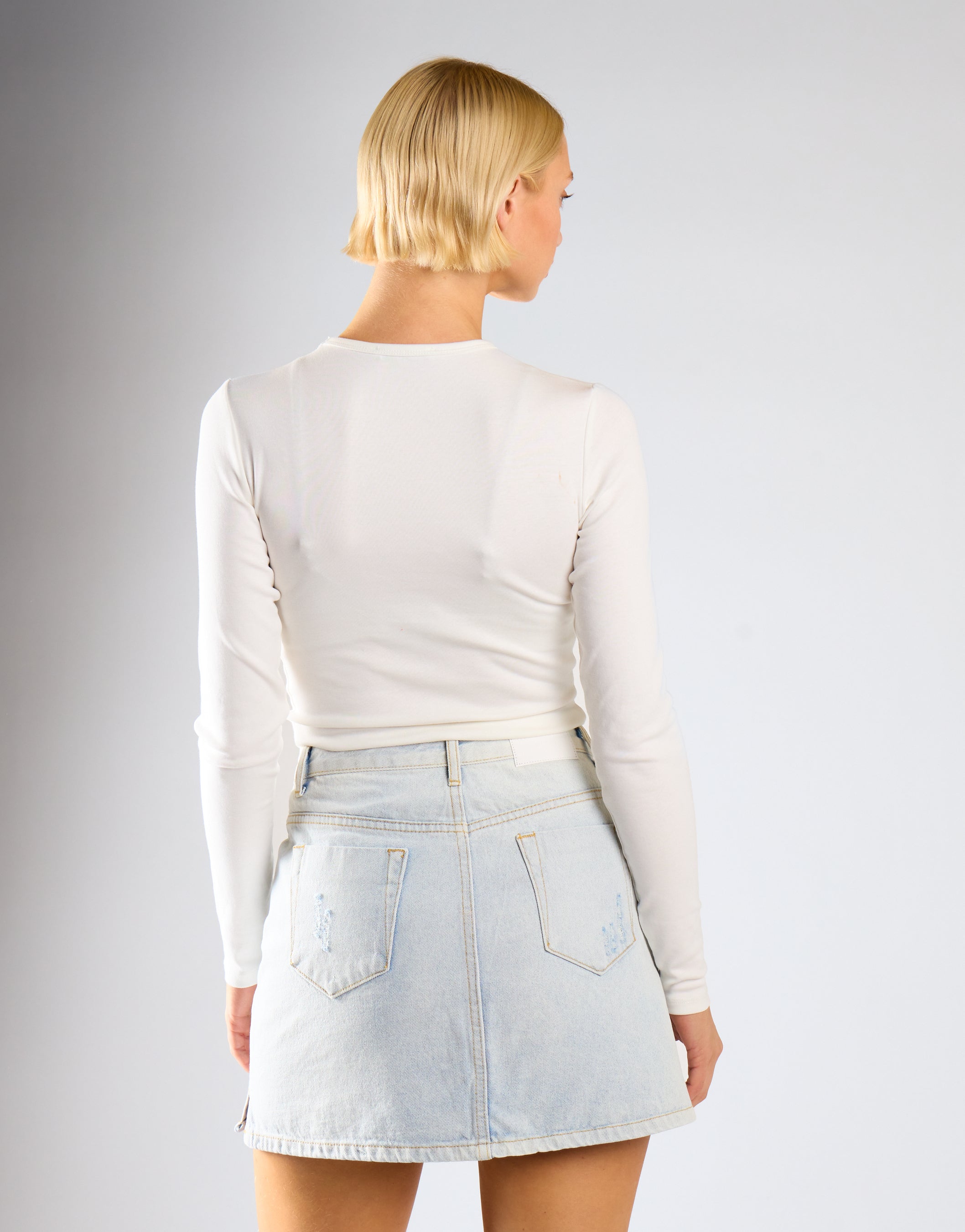 Glamorous Womens Light Antique Bleach Denim Mini-Skirt. This staple denim skirt is destined for your Spring wardrobe. Featuring a flattering mini fit with distressed detail and a side split, this piece will look great on you! Elevate the look with a classic bodysuit and some mule sandals for an on-trend vibe.