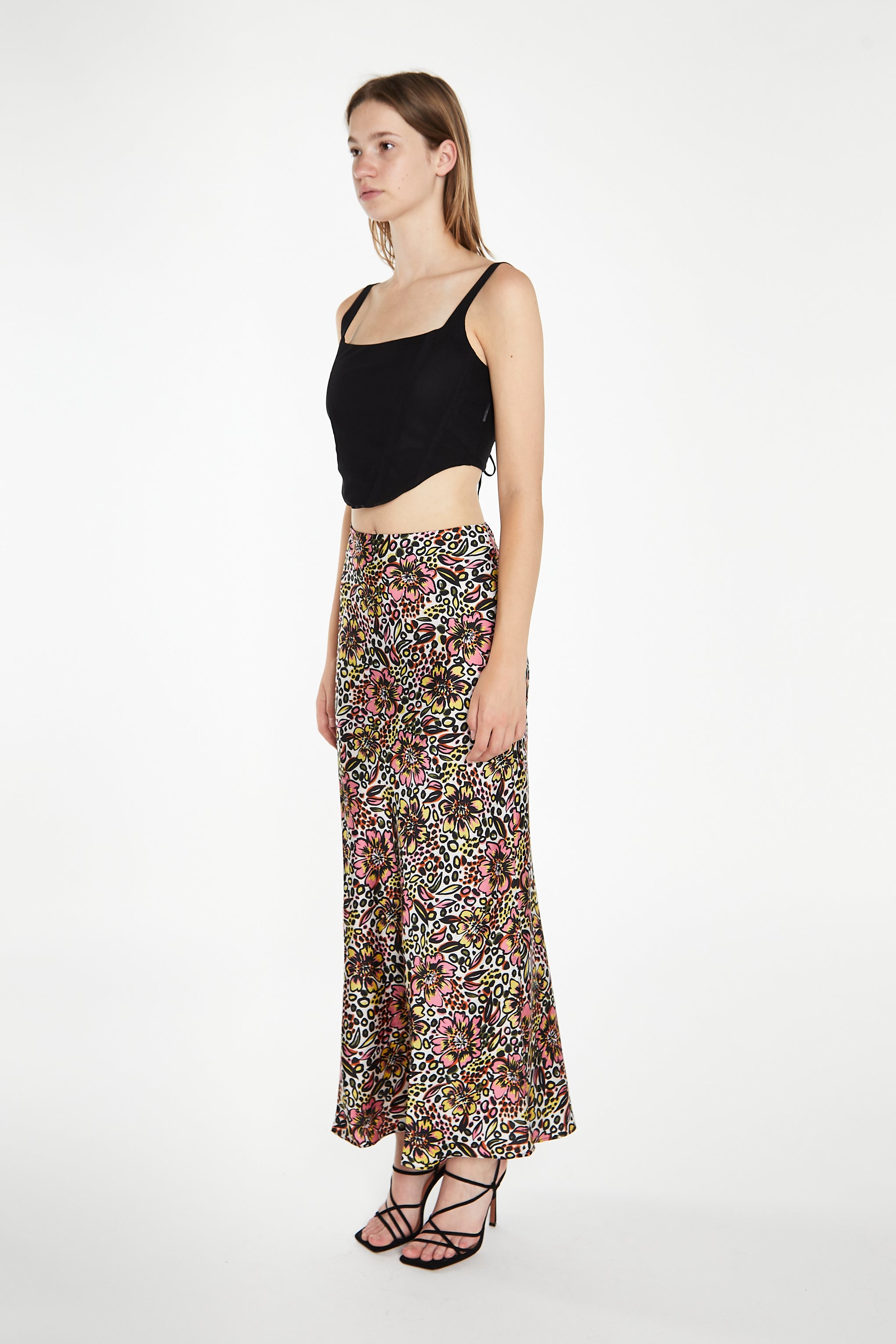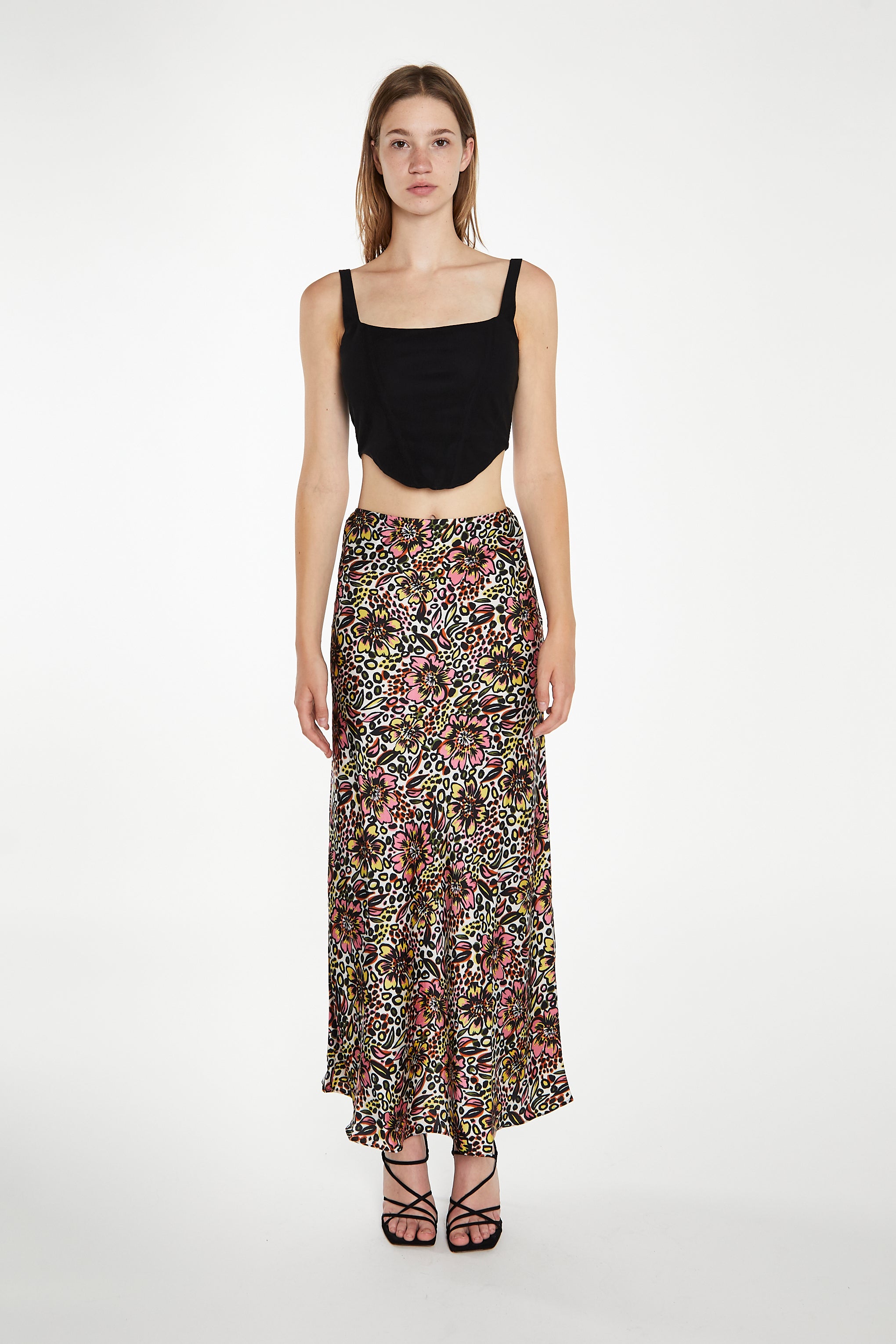Glamorous Womens Retro Abstract Floral Bias-Cut Midaxi Skirt. Refresh your wardrobe with this playful Retro Abstract Floral print skirt. Featuring figure flattering bias cut, this midaxi skirt will not fail to impress! Style with a simple white tee and trainers for brunch or dress up with a cute corset and heels for cocktails with the girls.