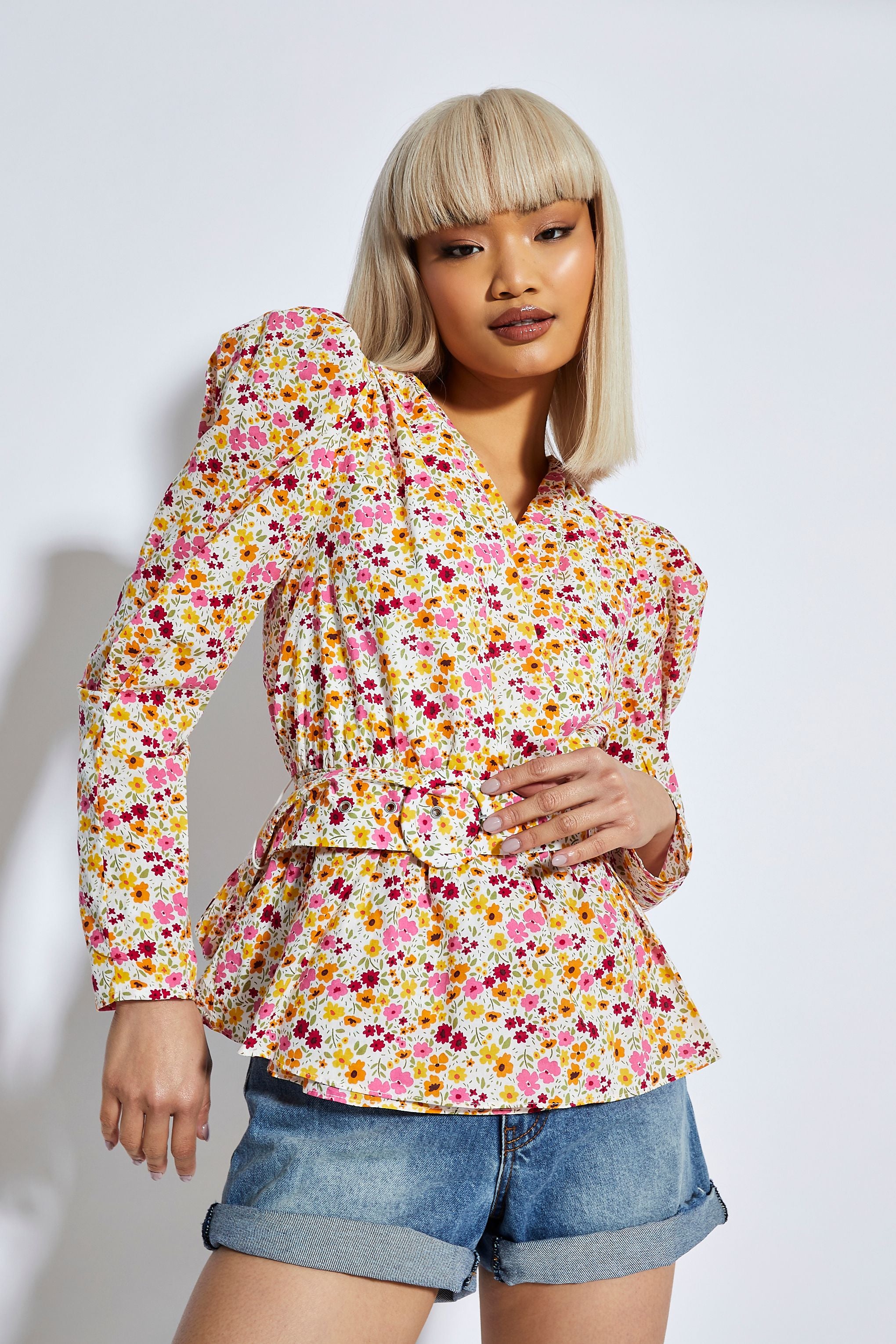 Glamorous Womens Bold Multi Flower Puff Shoulder Belted Blouse. This top is perfect for your wardrobe this season! Featuring a puff shoulders and belt detail, we love this piece here at Glamorous. Pair this floral piece with some denim jeans and trainers for the perfect look this spring 2022.