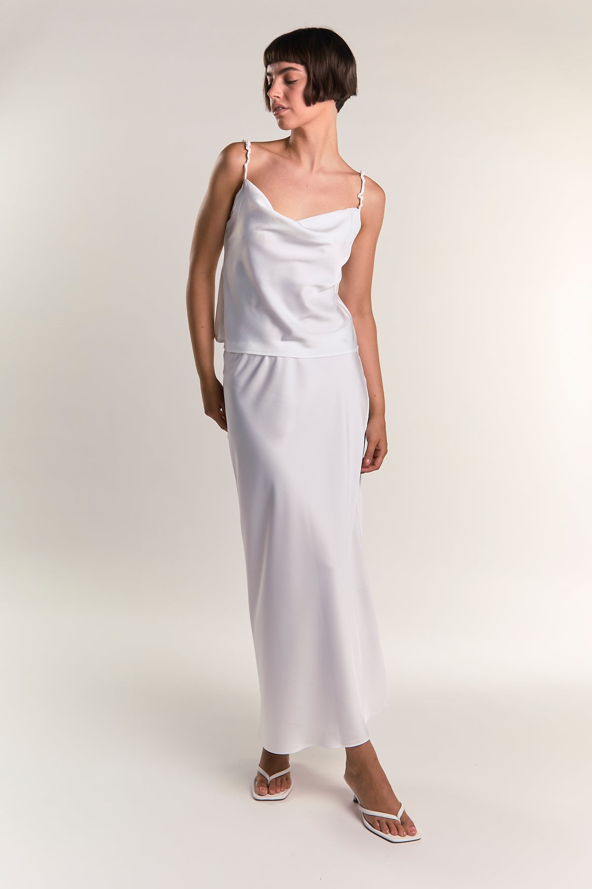 Glamorous Studio White Satin Cowl Neck Cami Top