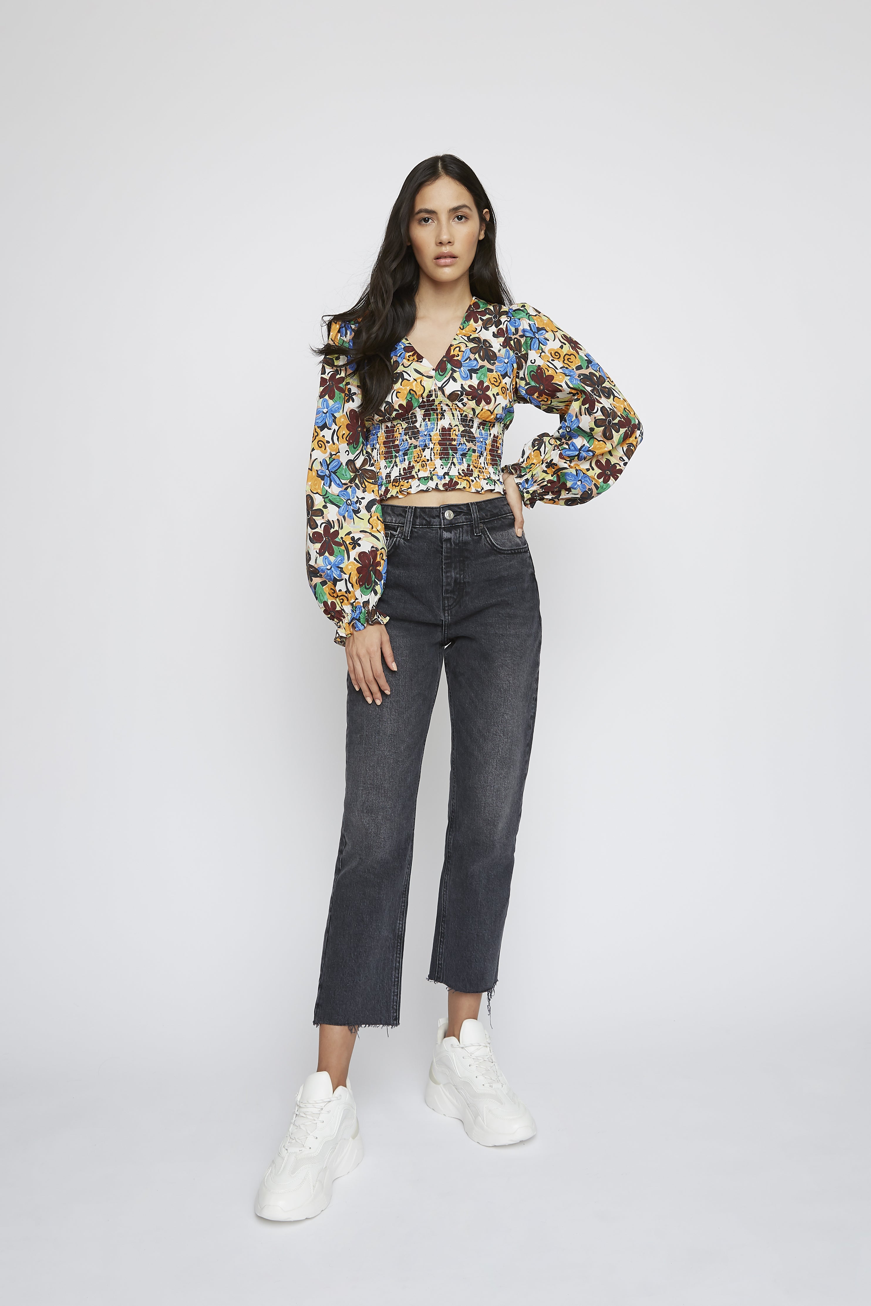 Glamorous Spring Floral V- Neck Long Sleeve Elasticated Blouse