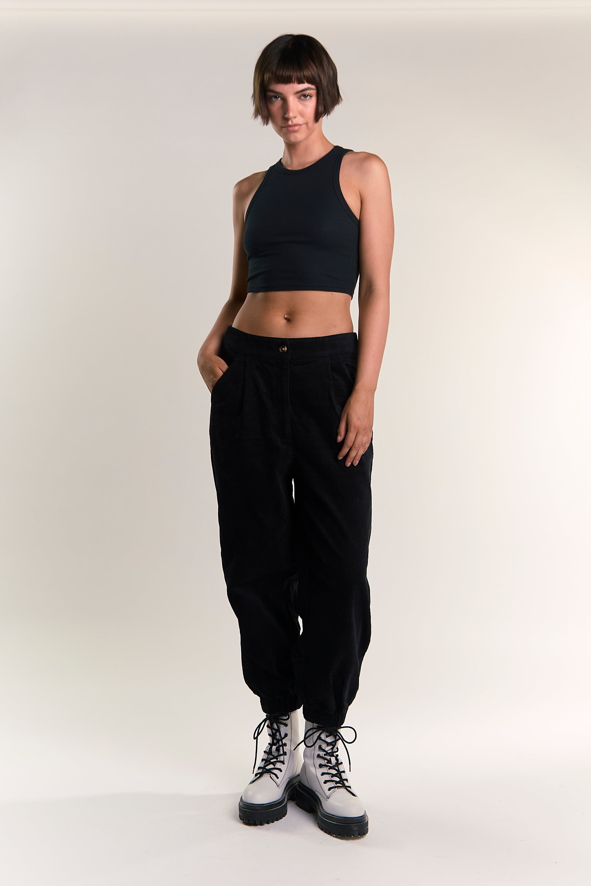Glamorous Womens Black Cuffed Ankle Cargo Trousers. We are loving these chic high waisted trousers. Featuring a flattering fit and on trend style. The trousers are perfect for drinks with the girls or a date night. Style with a white blouse and mule sandals for the ultimate fashion forward look.