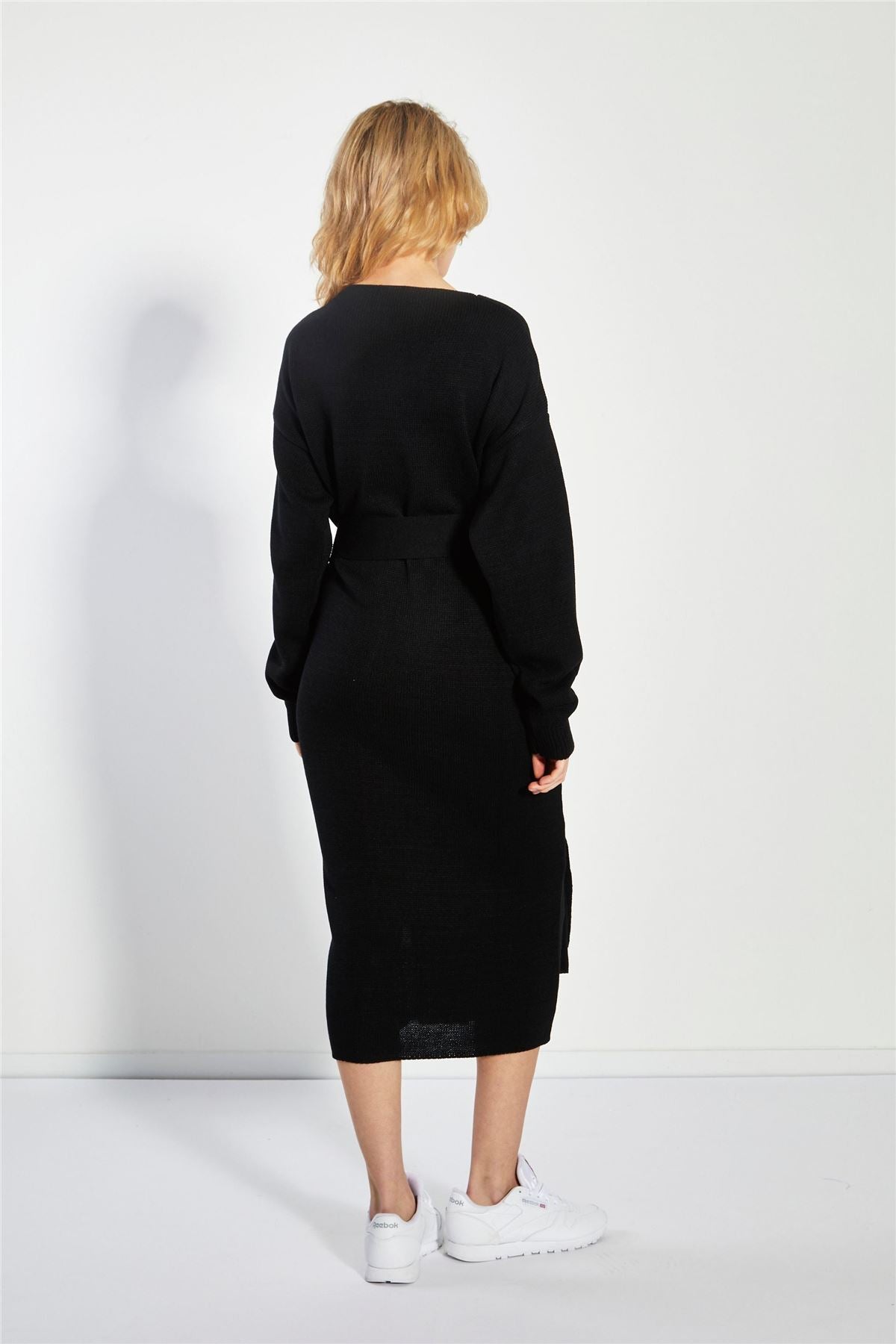 Glamorous Women's Black Tie-Waist Knitted Midi-Dress