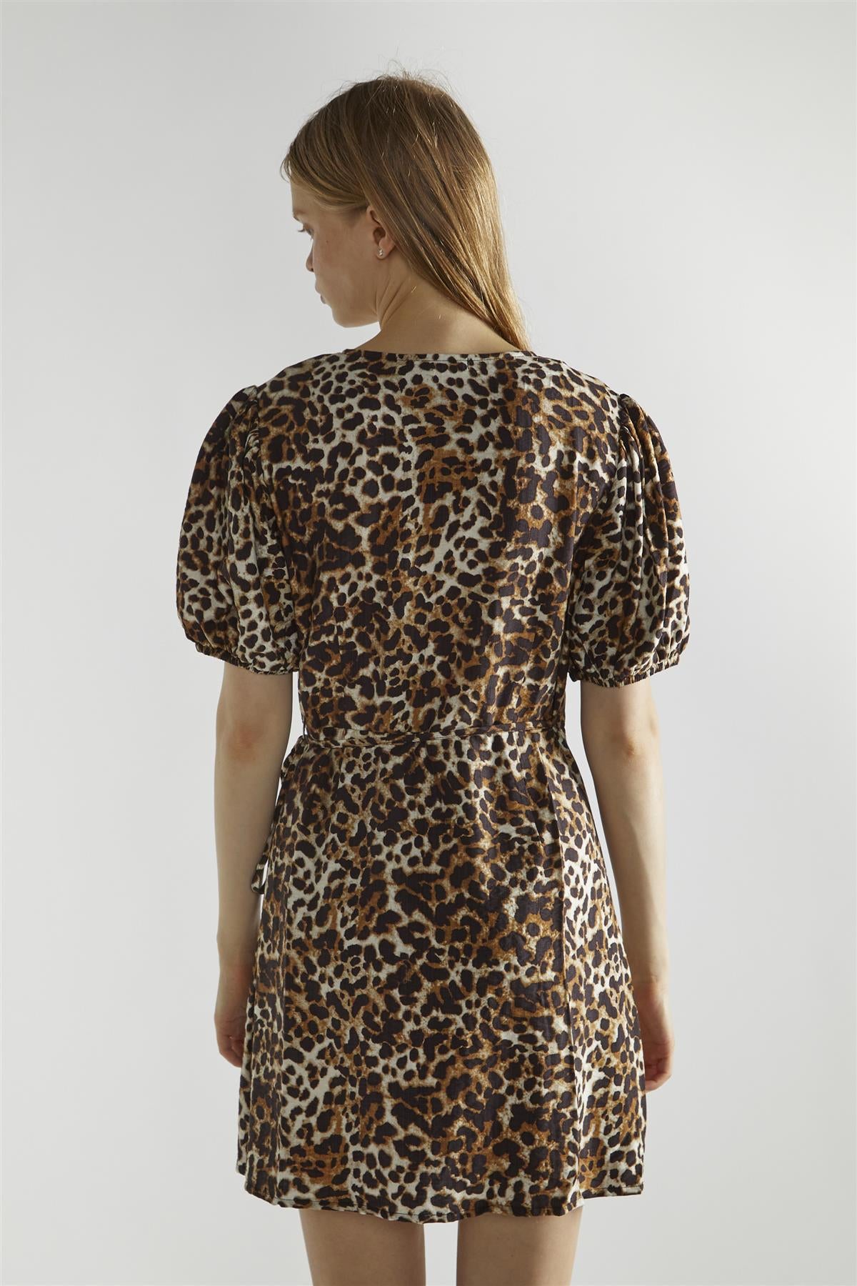 Glamorous Women's Leopard V-Neck Wrap Mini-Dress. This mini dress is a head-turner that combines wild style with feminine charm. The bold leopard print makes a statement, while the wrap design flatters your figure and allows for a customizable fit. The V-neckline adds a touch of allure, perfect for showcasing your favourite necklaces or letting your décolletage shine. Short statement sleeves provide just the right amount of coverage, keeping you cool while adding a unique flair to the overall look. This dress is a versatile piece that transitions effortlessly from day to night - pair it with sneakers and a denim jacket for a casual brunch, or dress it up with heels and statement earrings for a night out on the town. The mini length shows off your legs, making it ideal for warm weather outings or dancing the night away. Comfortable yet chic, this dress is designed to make you feel confident and stylish with minimal effort. It's the kind of piece that does the talking for you, allowing your personality to shine through while keeping you fashionably on point.