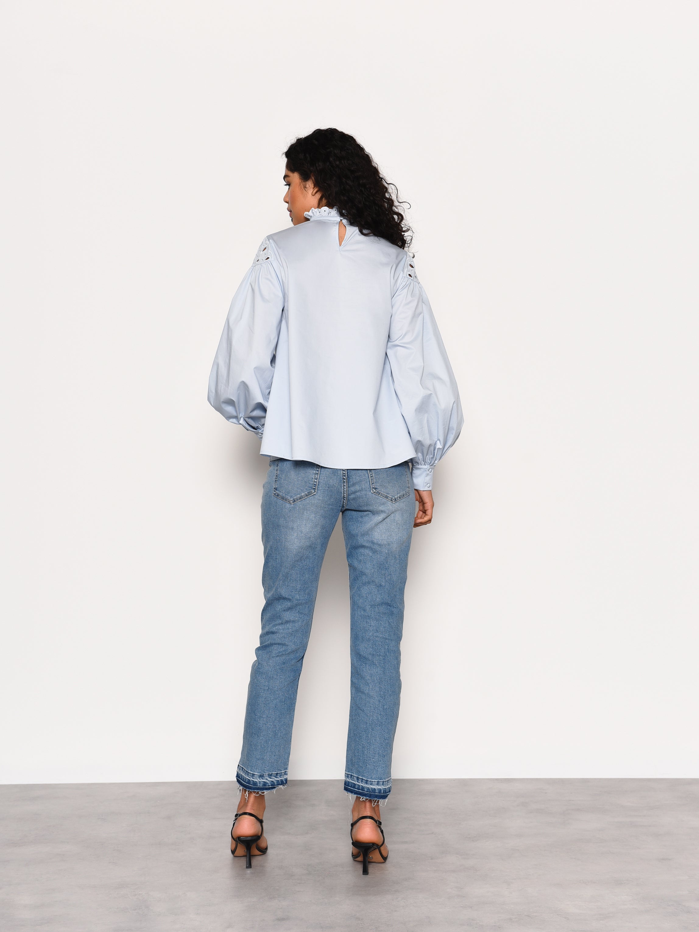 Glamorous Light Blue Puff Sleeve Blouse. Its all about taking your classic pieces to the next level. Start with this gorgeous light blue blouse with on-trend puff sleeves for a hint of detailing that will forever look the part. Style with your favourite jeans and a pair of strappy heels for an on-trend elevated look.