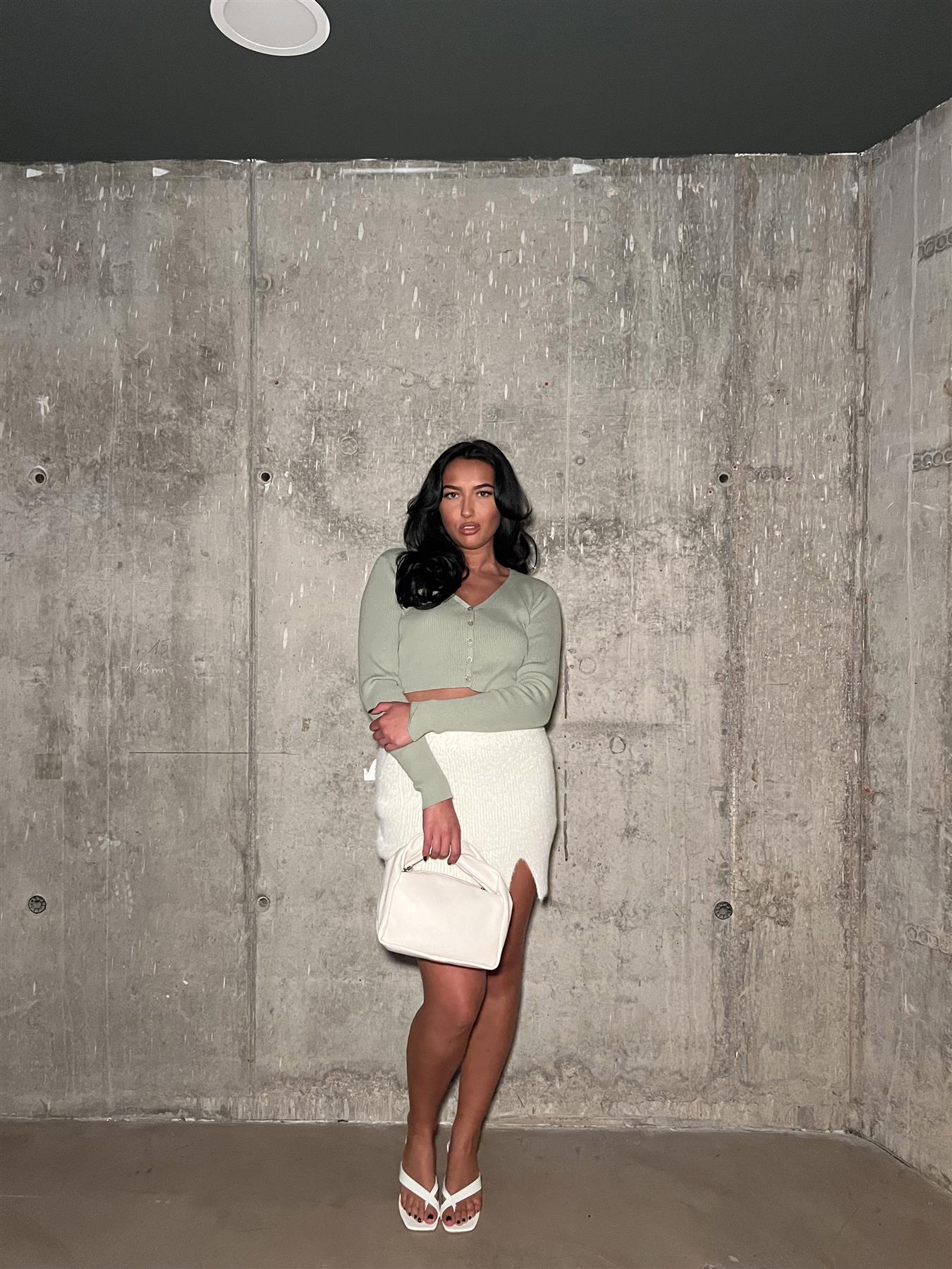 Glamorous Women's Light Khaki Long sleeve Cropped Length-Cardigan. Keep things cozy and stylish with our Light Khaki Long Sleeve Cropped Length Cardigan. The button-front design gives you the option to wear it open or closed, making it easy to layer over your favourite tops or dresses. Its V-neckline adds a flattering touch, while the cropped length pairs perfectly with high-waisted jeans or skirts, giving your look a modern edge. The long sleeves provide extra warmth, making it a great go-to piece for cooler days. Soft, versatile, and easy to style, this cardigan is perfect for casual days or when you need a light layer to complete your outfit.