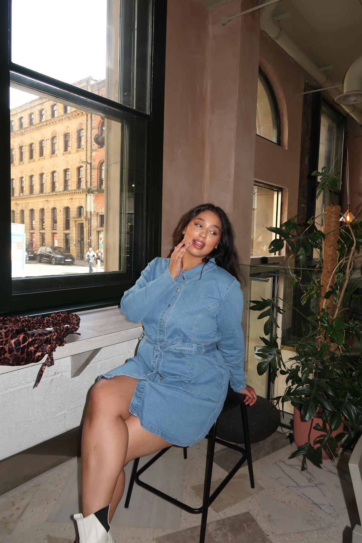Glamorous Women's Light stone wash Midi-denim . This light stone wash midi-denim dress brings a fresh and relaxed vibe to your wardrobe. The button-front design makes it easy to wear, while the tie waist allows you to adjust the fit to your liking, giving you a flattering shape. With long sleeves, it’s perfect for transitioning between seasons, offering a bit of coverage while keeping the look casual. The soft denim fabric adds just the right amount of structure without feeling too heavy, making it a comfortable option for all-day wear. Pair it with sneakers for an everyday look or dress it up with boots for a more polished feel. It's a versatile piece that works in any season.
