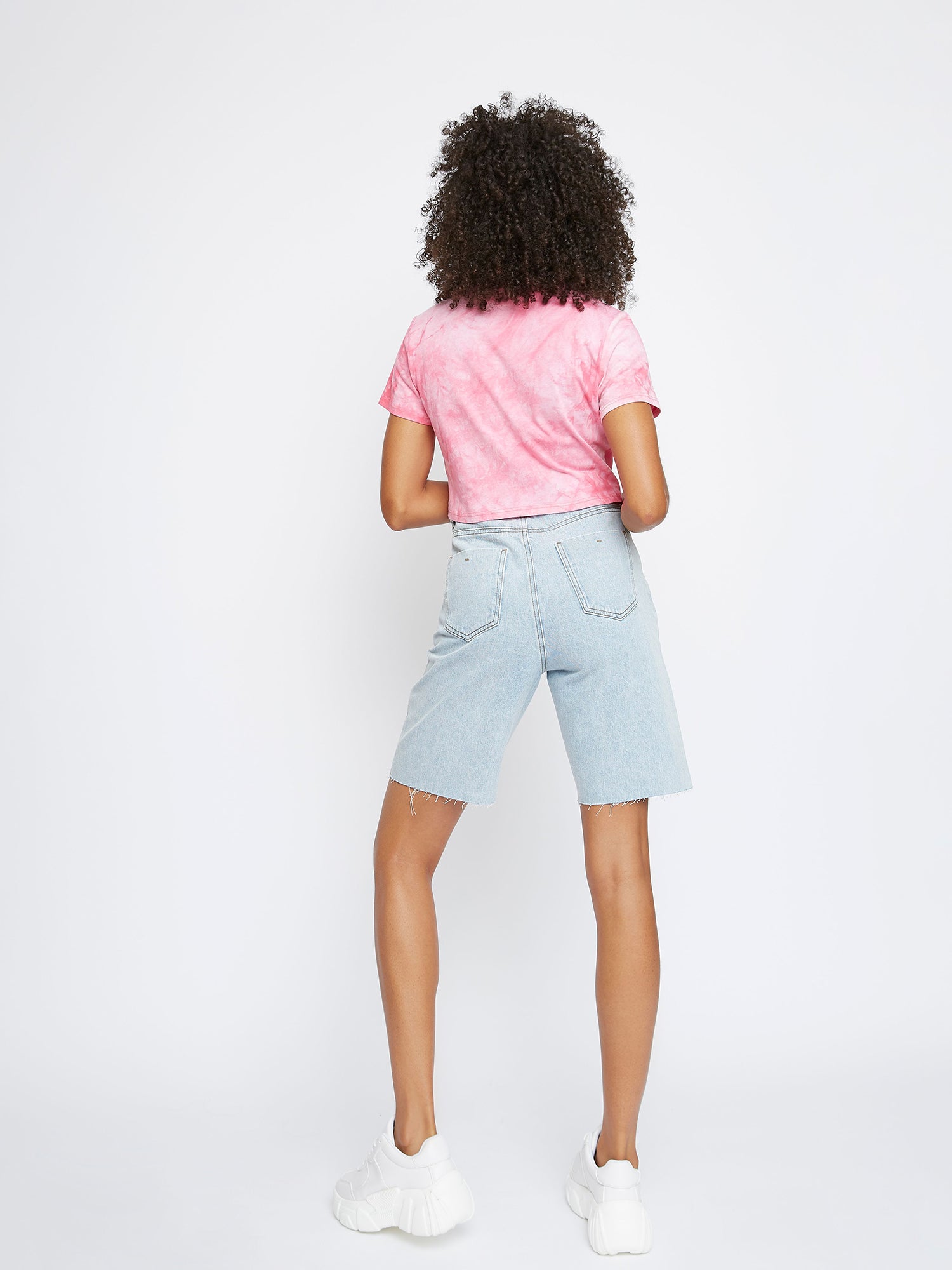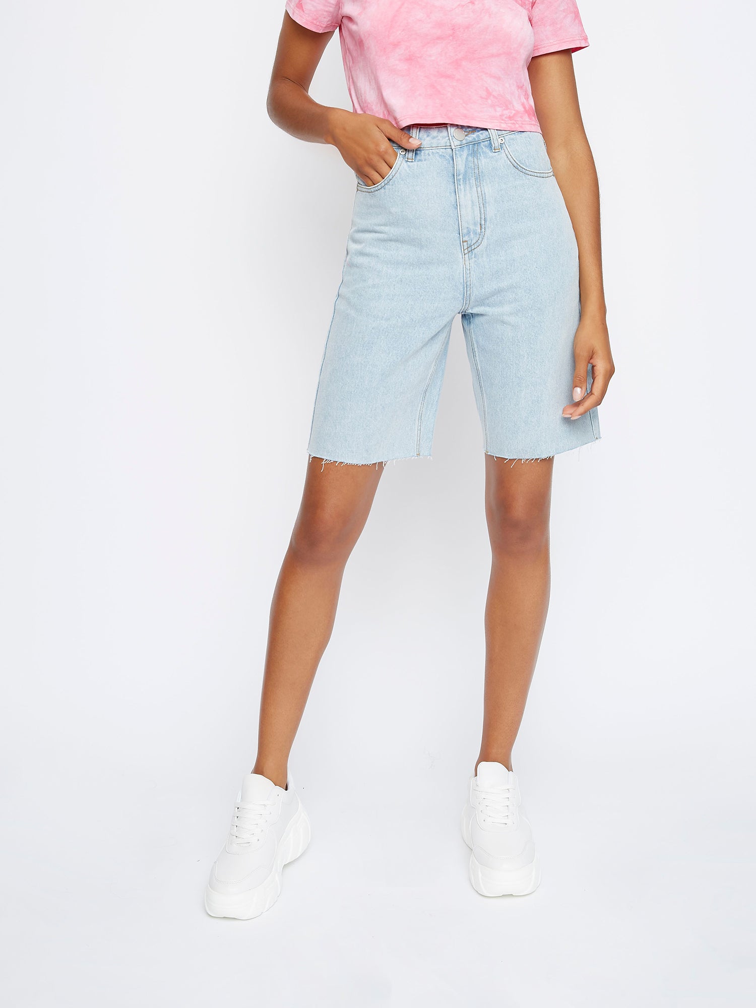 Glamorous Women's Light Stonewash Denim Long Shorts. These relaxed shorts are perfect for this summer season. Featuring a flattering fit and relaxed hem these are shorts you need in your wardrobe. Pair with floral blouse and chunky trainers for an effortless chic look.