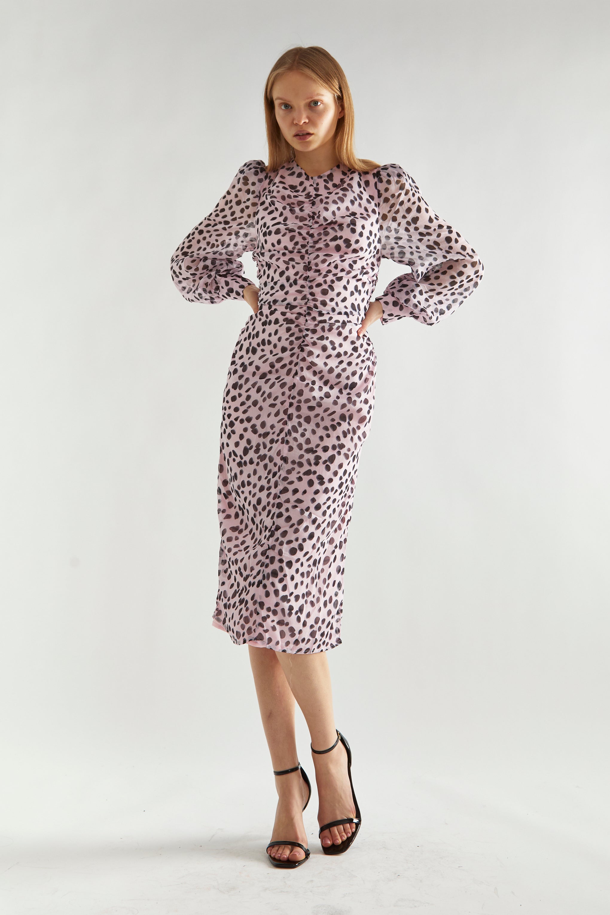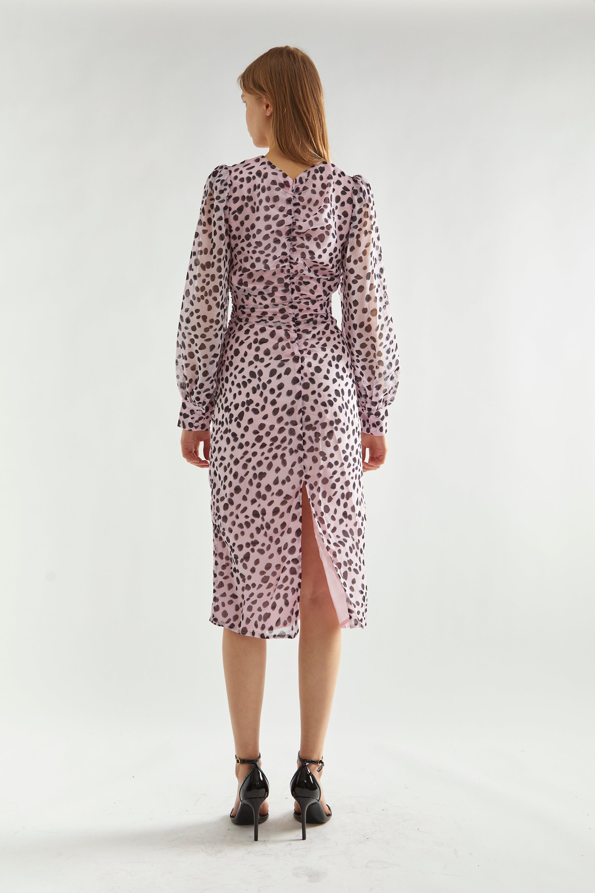 Lilac-Dalmatian Ruched-Front Midi-Dress