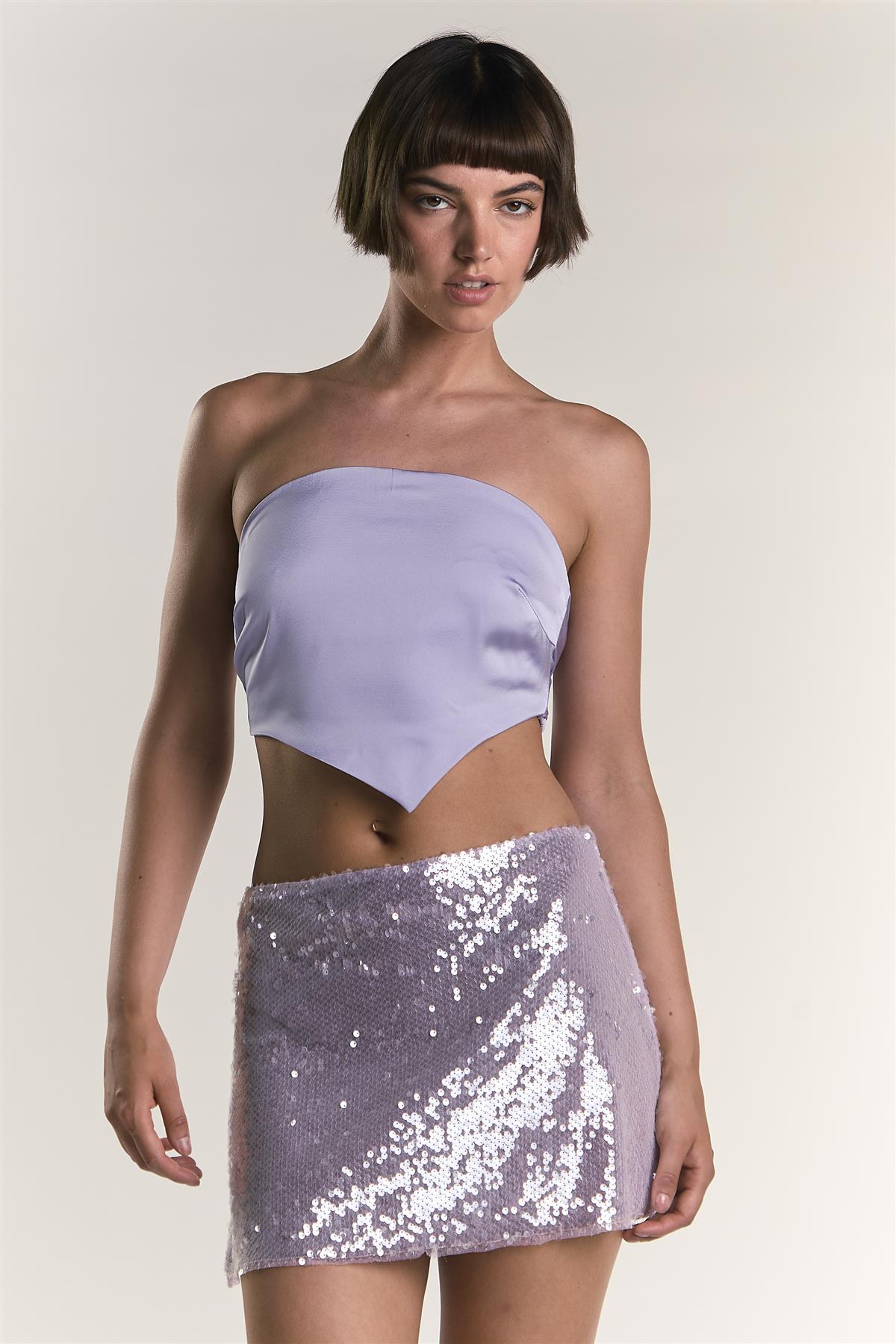 Lilac Sateen Badana Strapless Top