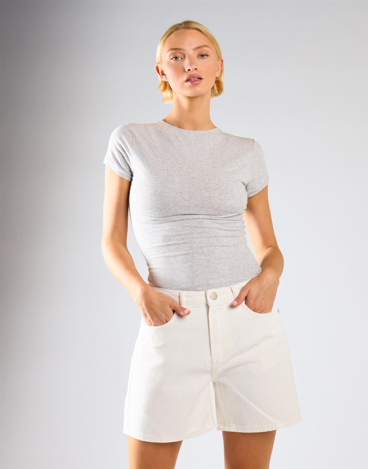 Glamorous Women's Mid Waist Loose Fit Denim Shorts - Ecru. Casual freedom and timeless texture blend seamlessly in these mid waist loose fit denim shorts, offering a relaxed, non-restrictive silhouette that keeps you comfortable and confident through every laid-back adventure or busy day. Denim fabric delivers durable, lived-in softness that moulds gently to your movements while holding its shape, providing reliable coverage with a classic feel that pairs effortlessly with any top. Loose fit drapes breezily through the thighs for easy wearability and a flattering, leg-lengthening vibe that feels supportive without clinging. Mid waist sits comfortably at the hips for natural balance and subtle smoothing, ensuring everything stays in place without digging in. Button front adds a practical, versatile detail—fasten for structure or leave open for extra ease—turning simple styling into a breeze. Style with a tucked-in tee or flowy blouse to let the denim texture, button front, loose fit, and mid waist shine naturally.