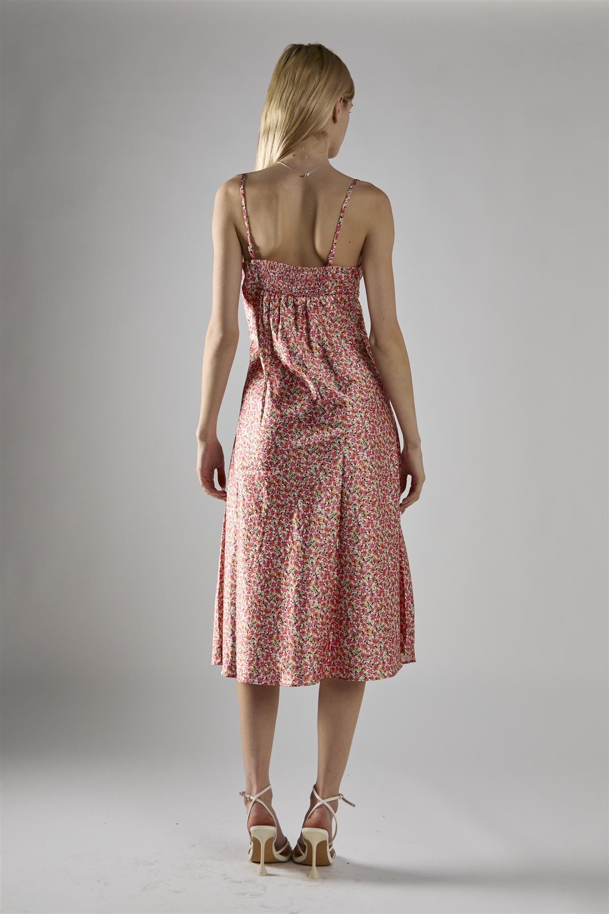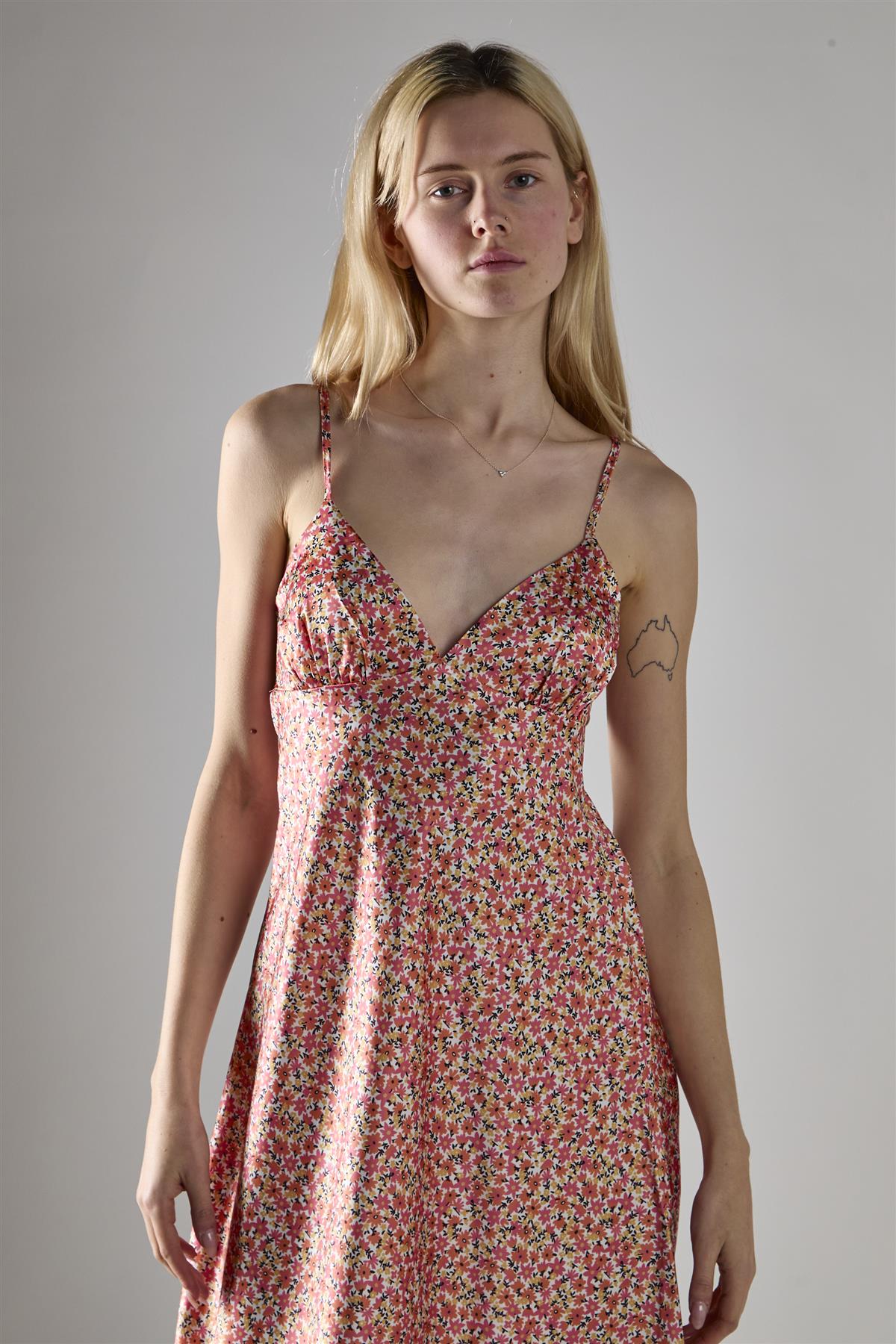 Glamorous Women's Multi Coral Ditsy Spaghetti-Strap Midi-Dress. Bloom into summer with this delightful floral midi dress that's as comfortable as it is charming. The sleeveless design and adjustable spaghetti straps make it perfect for those warm, sunny days when you want to feel cool and look effortlessly stylish. The V-neck adds a touch of allure, while the midi length offers a versatile silhouette that's suitable for various occasions. The vibrant floral print brings a cheerful energy to your outfit, making it a go-to choice for garden parties, brunches, or casual outings. You'll love how easy it is to dress up or down – pair it with sandals and a denim jacket for a relaxed daytime look, or add some heels and statement earrings for an evening event. The adjustable straps ensure a perfect fit, allowing you to customize the dress to your liking. This breezy number is sure to become a favourite in your wardrobe, offering both comfort and style in one beautiful package.