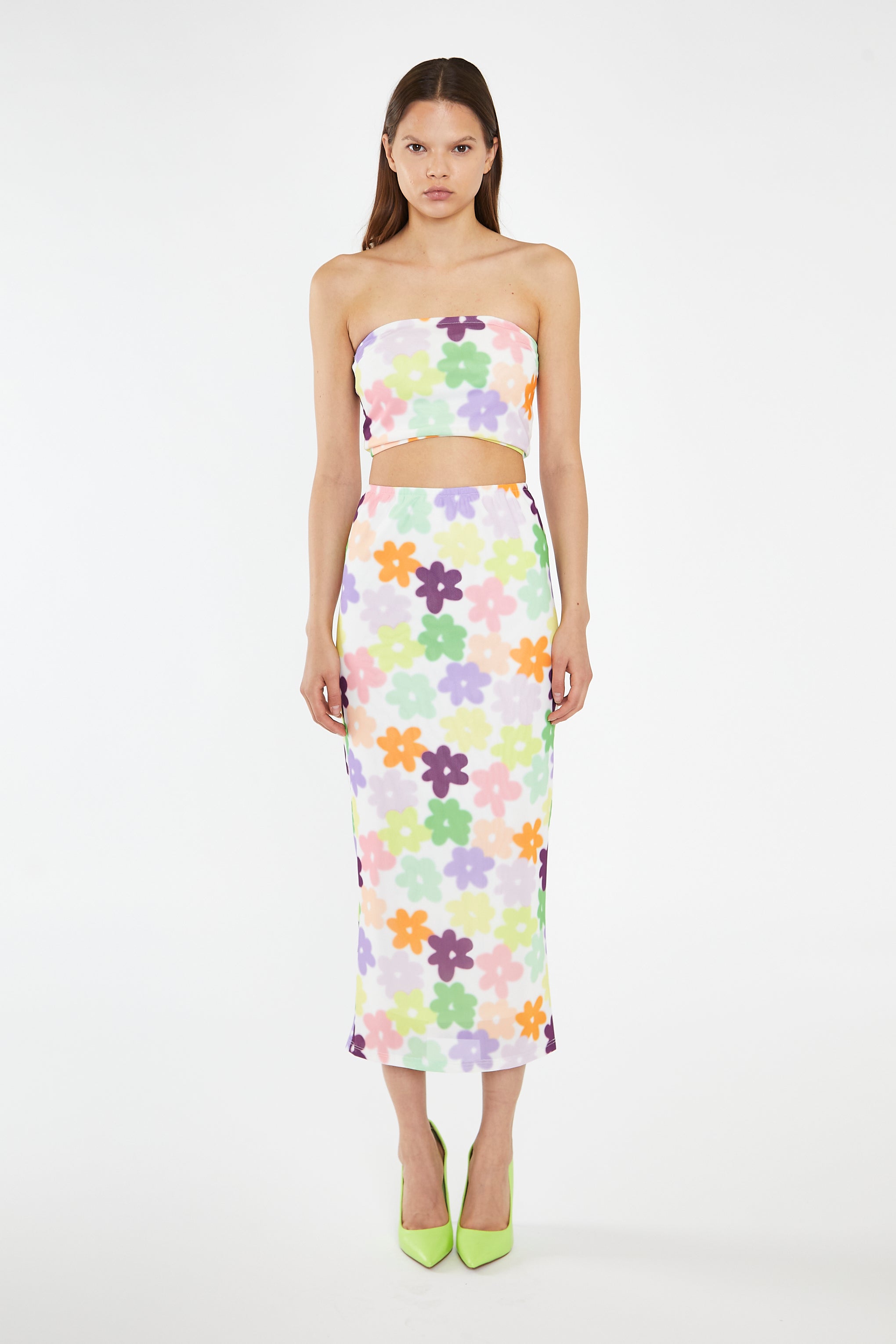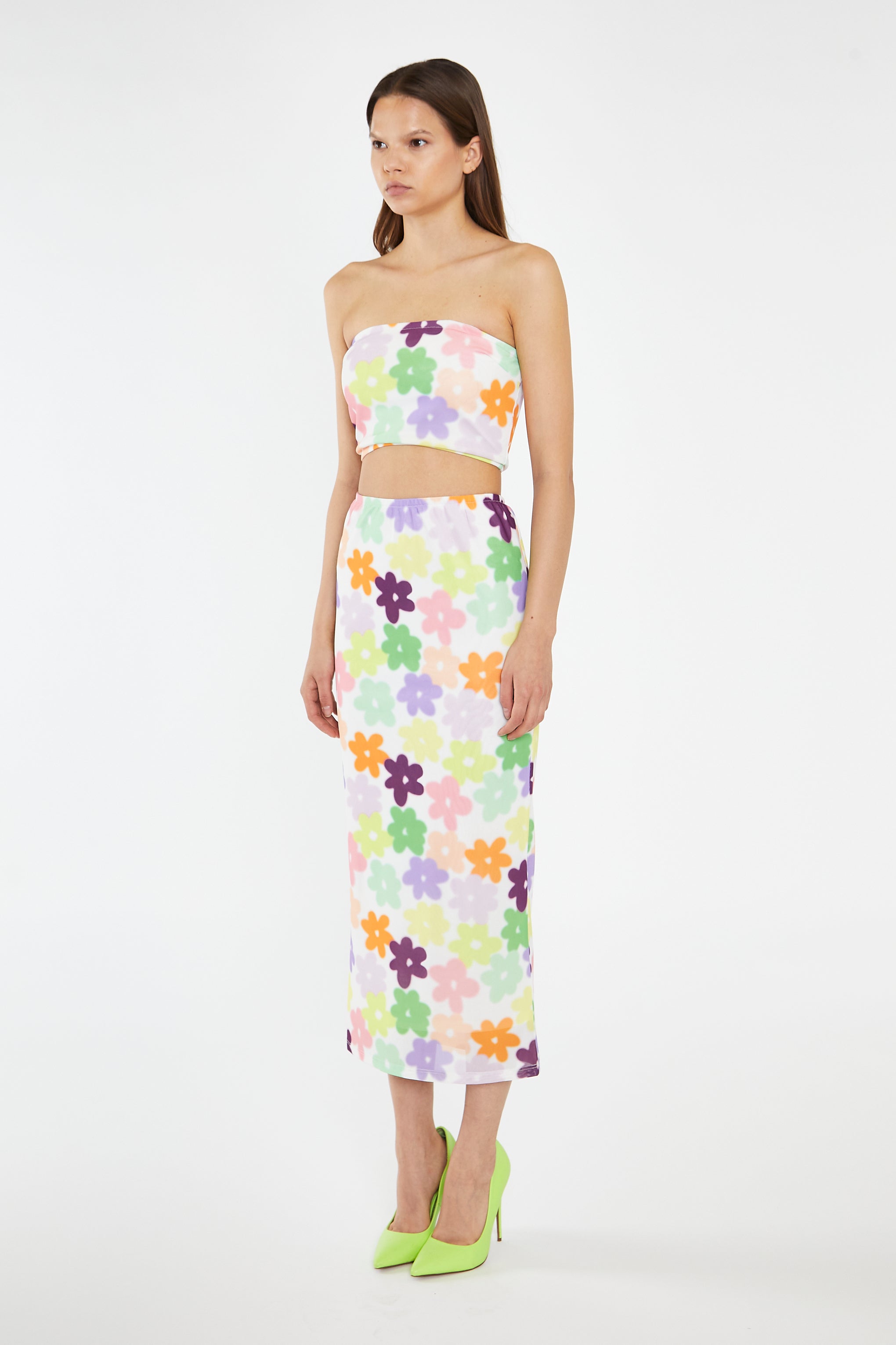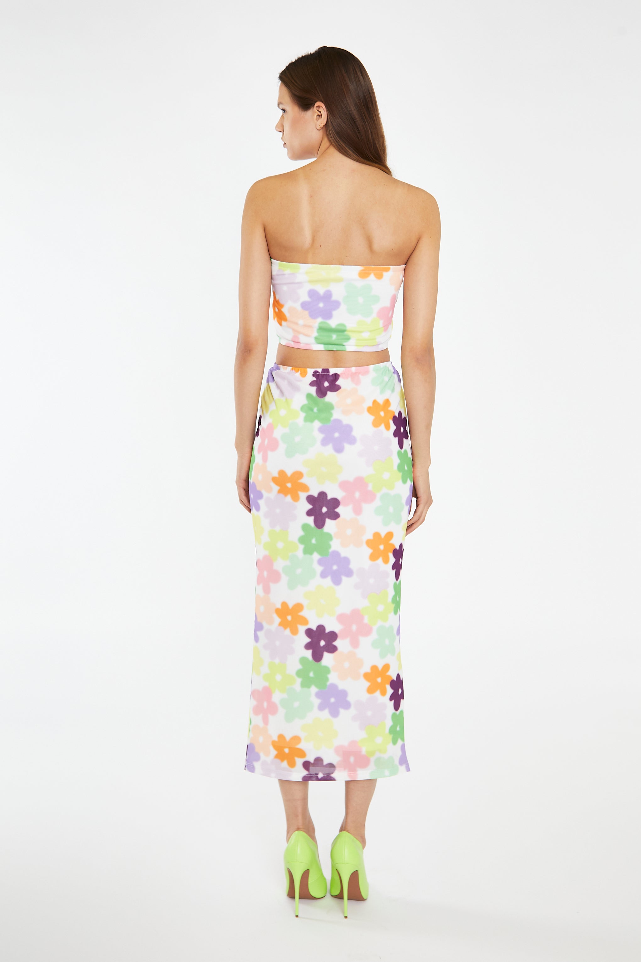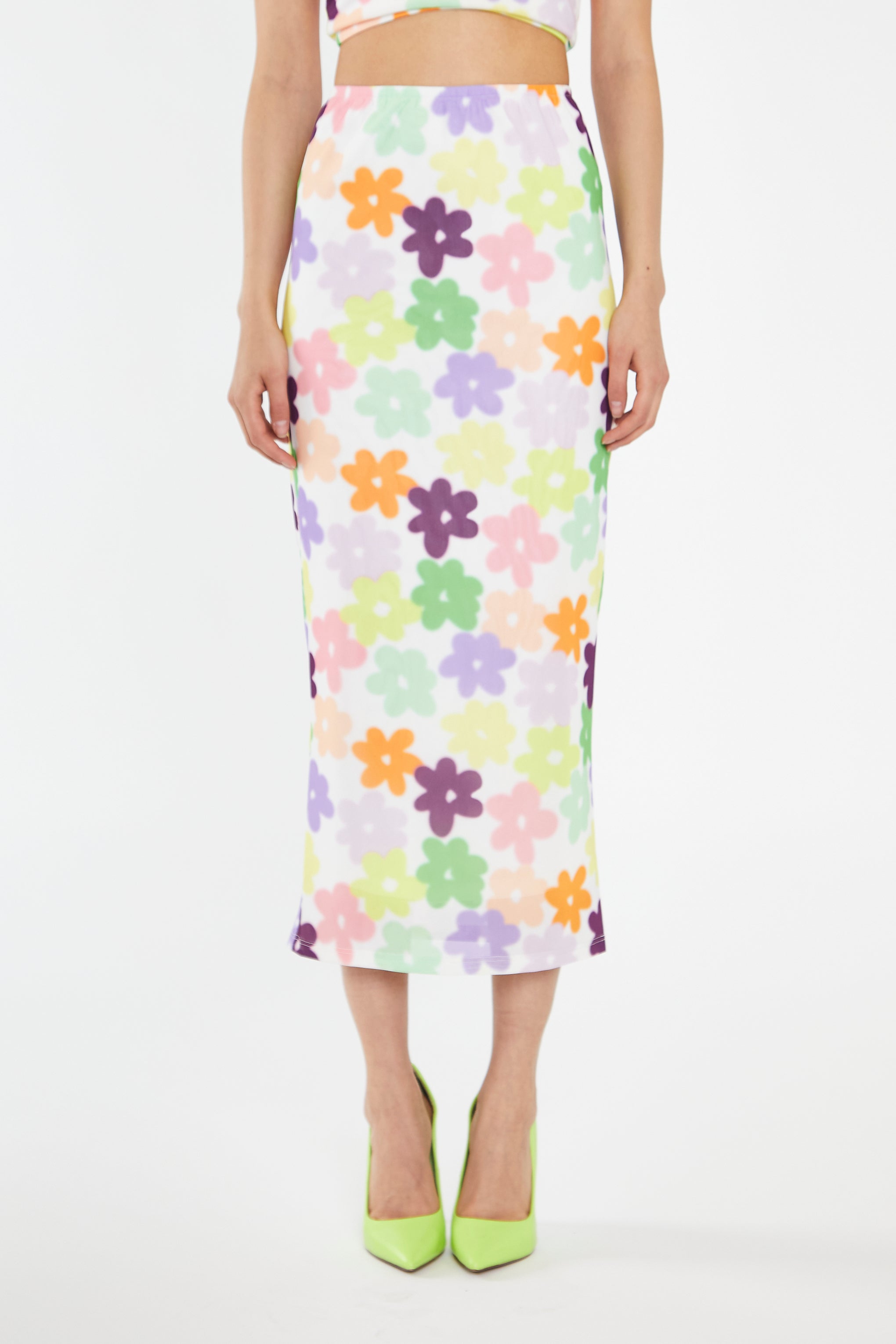 Glamorous Women's Multi-Flower Mesh Pencil Maxi-Skirt. Embrace your love for florals with our Multi-Flower Mesh Pencil Maxi-Skirt. The maxi length and fully lined design provide comfort and elegance, while the elasticated waistband offers a perfect fit. Paired with the matching top, this co-ord look will have you festival ready in no time!