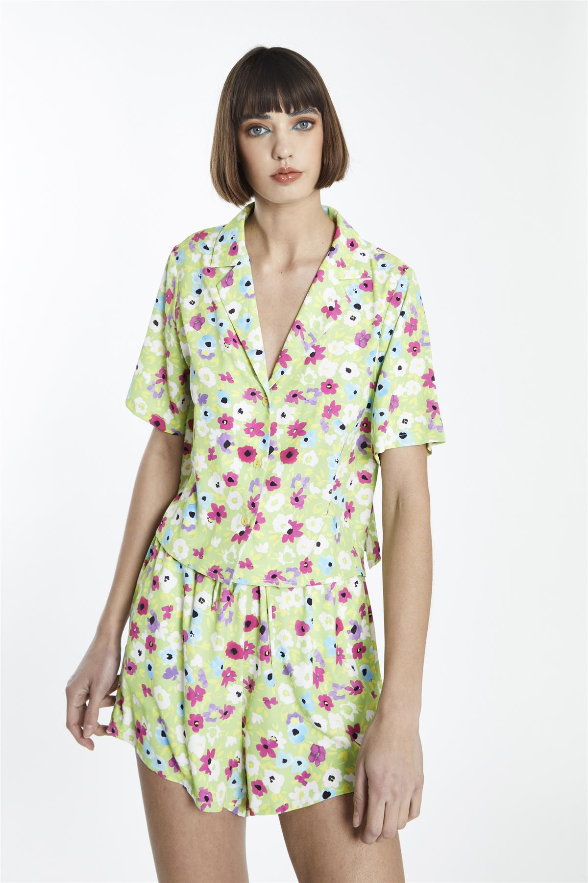 Glamorous Women's Multi Green Floral Button Front Crop-Shirt. This light stone satin crop shirt is a perfect mix of chic and relaxed style. The smooth satin fabric gives it a polished look, while the button-front detail keeps it classic and easy to wear. The cropped length makes it a great match for high-waisted bottoms, and its neutral tone works well with almost anything in your wardrobe. Pair it with the matching shorts for a coordinated outfit that’s effortlessly stylish, or dress it up with tailored trousers for a sleek evening look. The lightweight fabric is ideal for warmer days, and the timeless design ensures it’s a piece you’ll reach for again and again. Perfect for casual outings or dressed-up occasions alike.